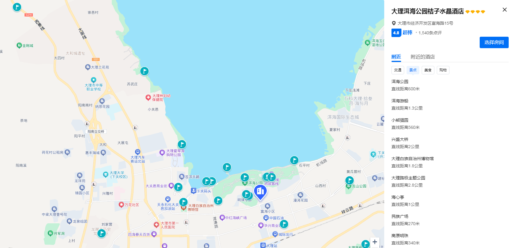 桔子水晶大理洱海公园酒店位于大理市富海路15号,背靠龙山公园,与洱海公园,明珠广场相拥,近观洱海神韵,将城市开阔景致尽收眼底,远可眺望苍山白雪银顶的秀丽雄奇,尽情感受柔软时光里的风花雪月。桔子水晶酒店属于设计师酒店,由国外著名设计师全新打造,当纯粹剔透的水晶,邂逅温暖明媚的阳光,满足你关于优雅的全部想象,设计风格注重细节又极具设计感,让品质在每个细节中发酵,在低调奢华间感受最舒适的高级,酒店客房均按国际星级标准配置,采用全智能家具,功能与形式并存,体验感十足;房间配有零压记忆枕和羽绒枕,隔音系统由清华声学所设计,确保您拥有一个安静舒适的休憩空间,酒店毗邻中红海峡购物广场,距高铁站大约十分钟的车程,距机场,古城各二十分钟的车程,交通便利,是您出差,旅游的理想之所。恒久水晶,温暖如初,每一秒的陪伴,道尽最纯粹的关怀,在苍山洱海涧,享风花雪月之惬意,感大理奢尚生活之真谛,让精致生活在此开启,置身桔子水晶,看尽风花雪