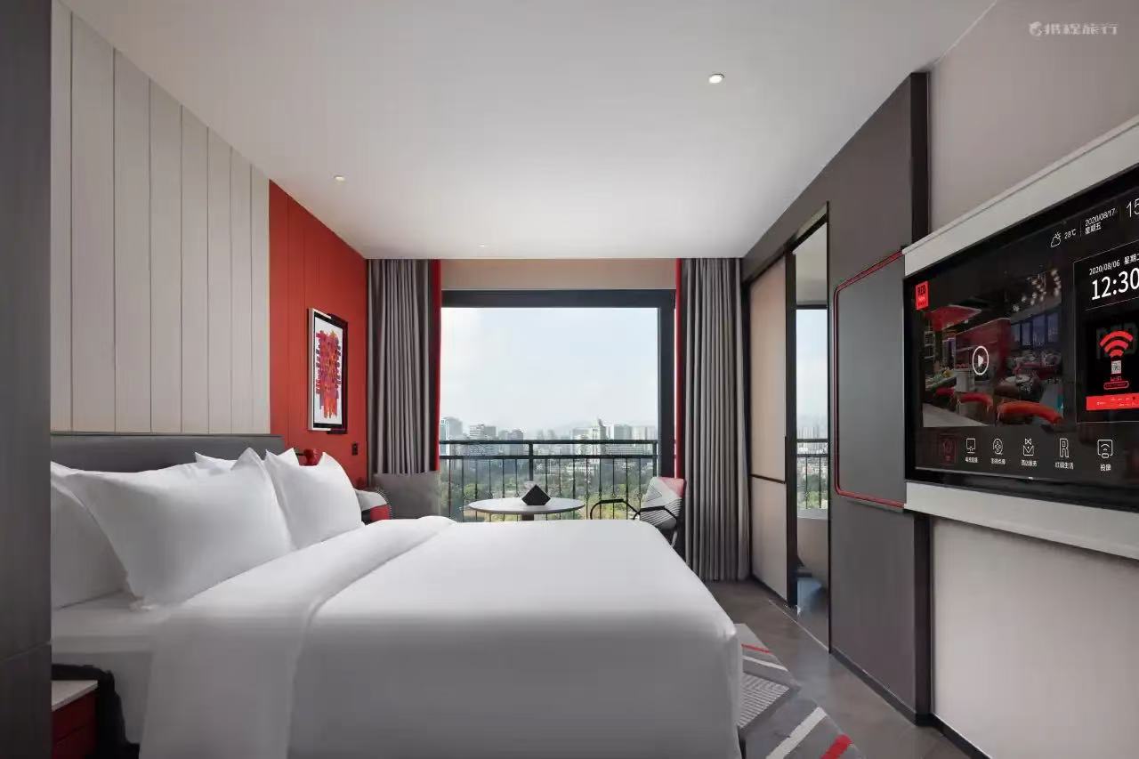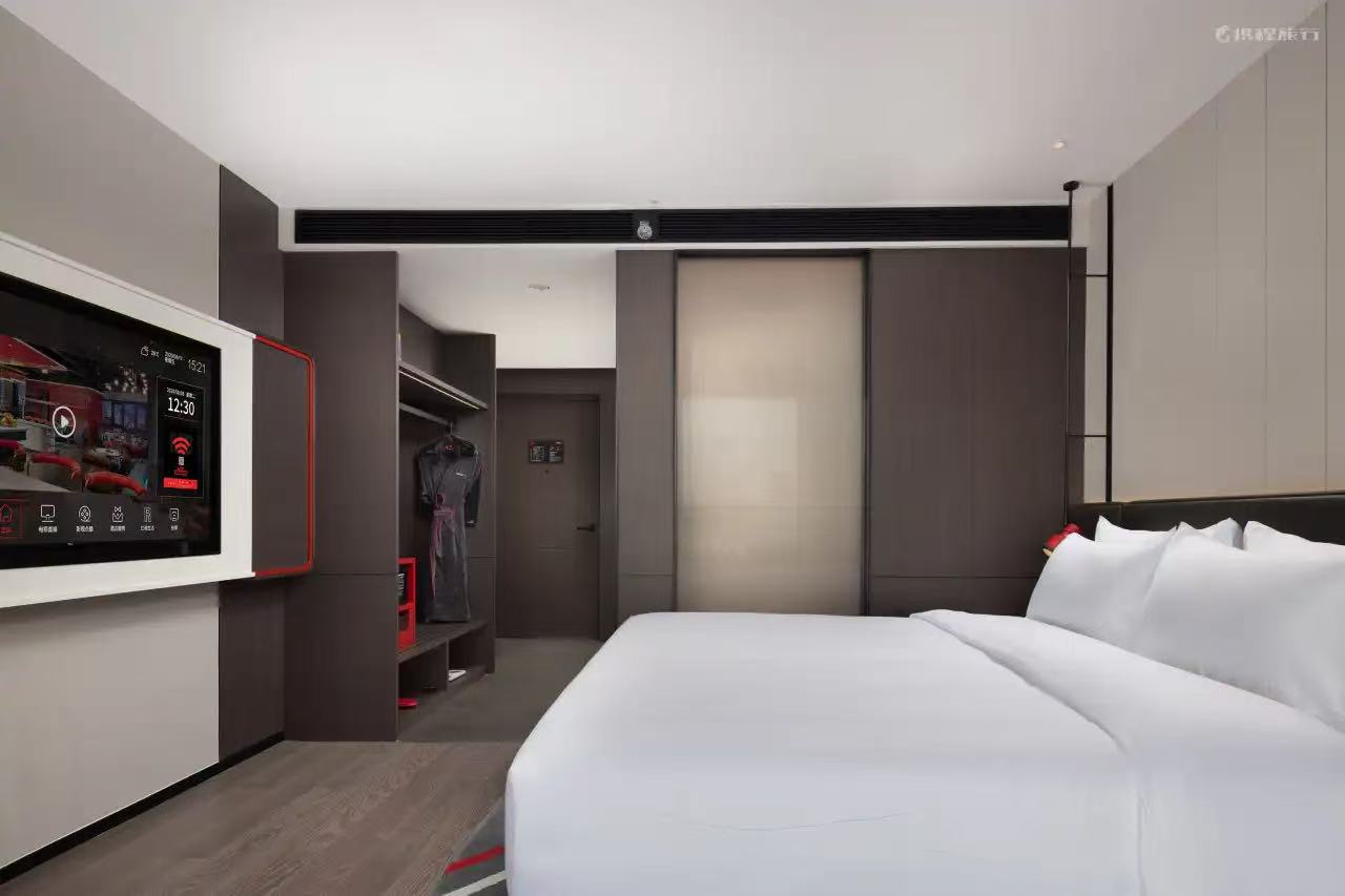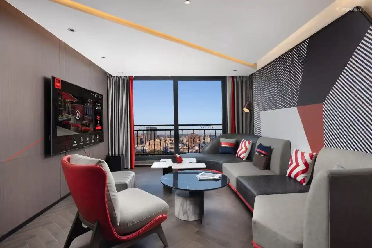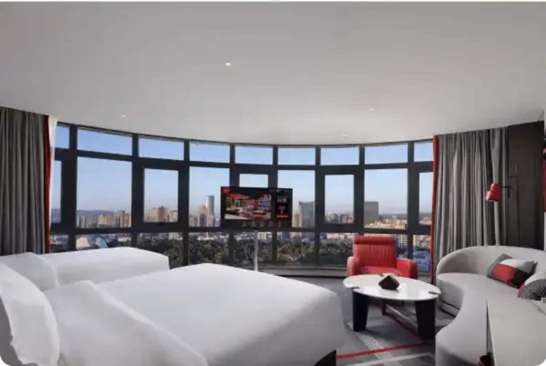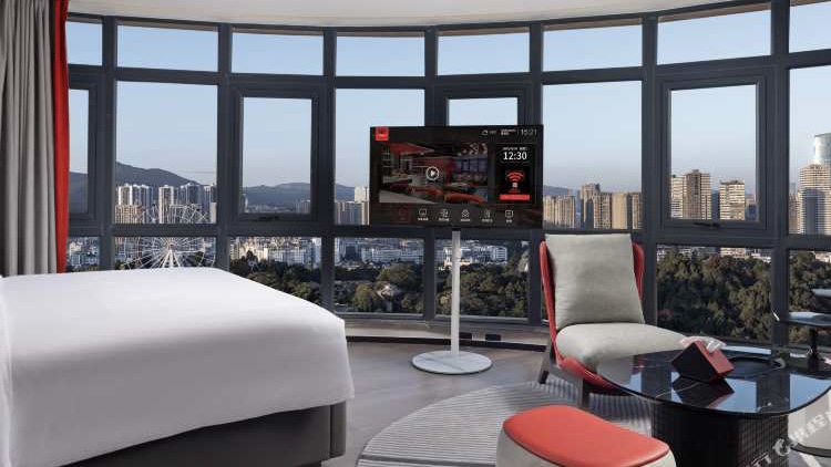 客房服务:酒店拥有多种房型,房间面积在 27-72㎡之间,部分房型配备智能窗帘、蓝牙音响、感应夜灯等智能设备,还提供戴森吹风机、高端洗护套装等,定制牙刷采用分色设计,部分房间还可欣赏到翠湖全景或摩天轮景观。客房 mini 吧首轮免费,提供贴心的叫醒服务,还有机器人服务。