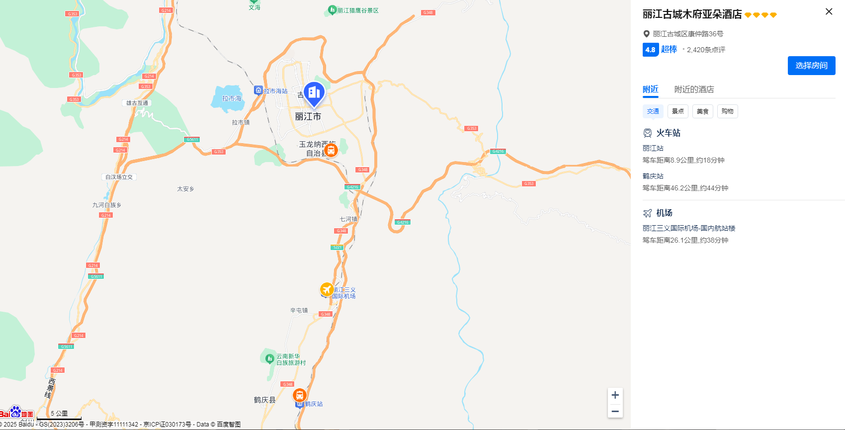 酒店位于丽江古城区繁华中心地段,闹中取静,距离丽江古城南门步行15分钟,距木府,古城忠义市场都很近,毗邻祥和商业街、沃尔玛、客运站,周边美食遍布,地理位置优越,交通十分便捷。附近商业设施丰富,有祥和商业广场、金甲市场、吉祥商贸城等,购物、餐饮十分方便。周边还有狮子山、四方街、大水车等众多景点,到黑龙潭景区、拉市海湿地公园、玉龙雪山、束河古镇都非常方便。