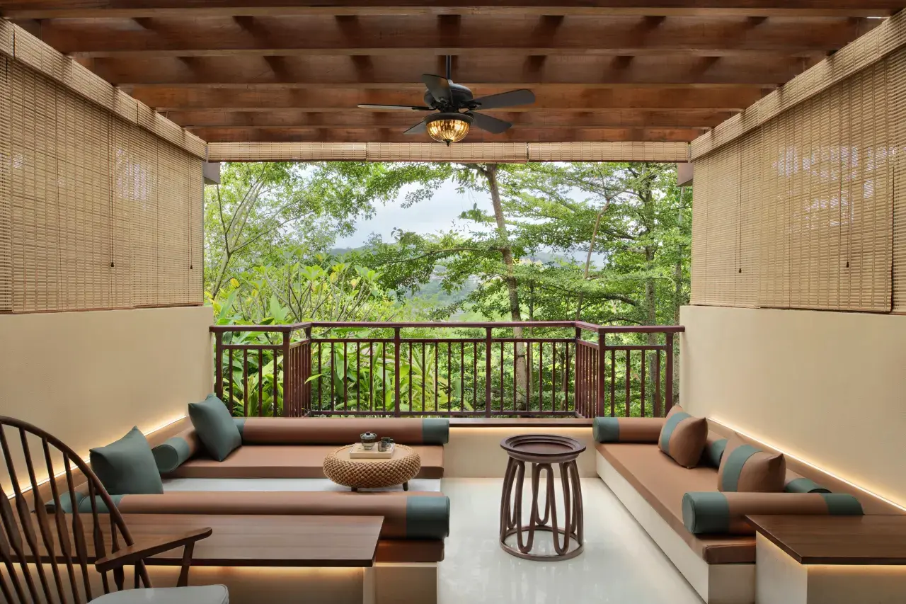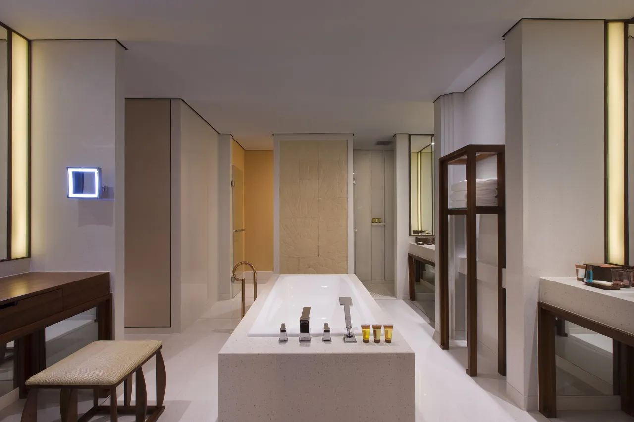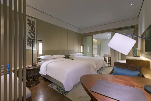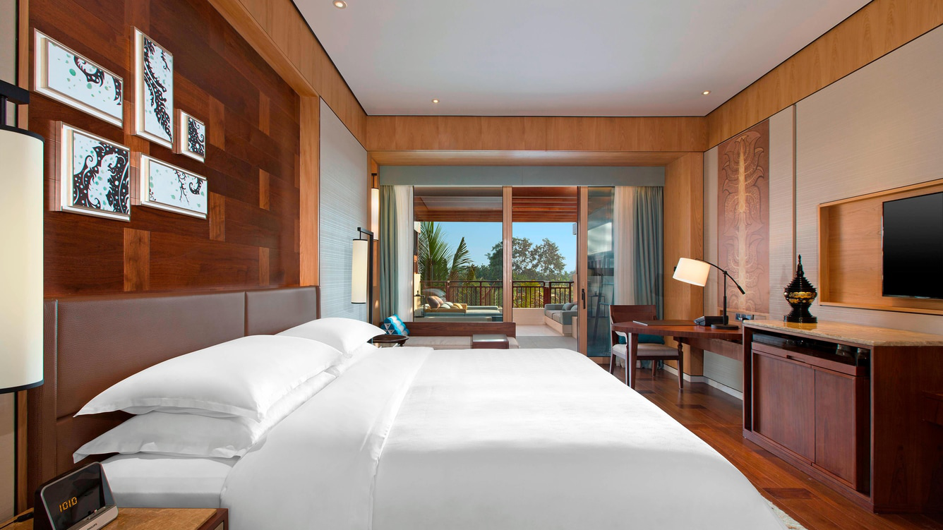 客房设施:拥有326间客房与套房,面积55㎡起,每间都带有独立景观阳台,可欣赏花园美景。房间内原木设计、亚麻窗帘、硕大浴缸等设施齐全,营造出温馨惬意的居住空间。