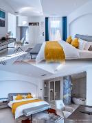 房间设施:部分房型配备戴森吹风机、爱马仕洗漱用品等高端设施,还有智能家居系统。房间多为洞穴式设计,部分房型带有室内泡池、户外海景泳池或私人小院子,如C703空中花园海景露台大床房,面积达80平方米,配有室内按摩浴缸和户外冲浪按摩浴缸。