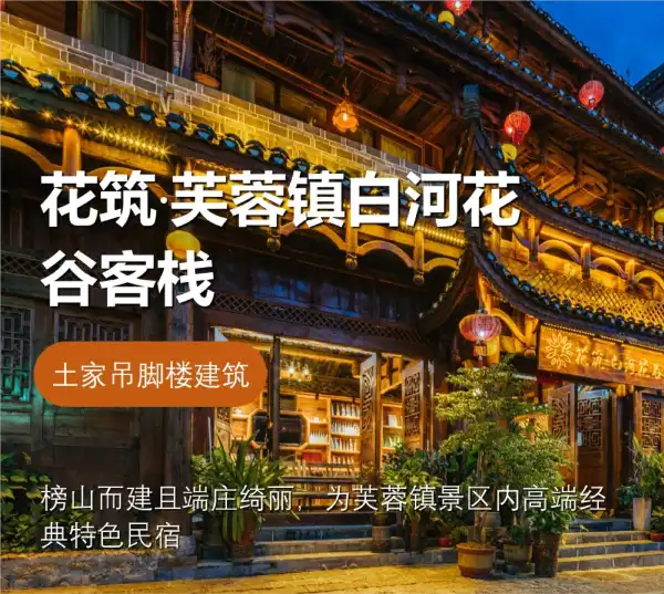 花筑·白河花谷客栈(芙蓉镇瀑布店)坐落于湖南湘西芙蓉镇景区河畔街246号,是一幢傍山而建的典型土家吊脚楼高档特色民宿,2021年6月开业,拥有32间风格迥异的客房,每间房均配备卫浴、舒达床垫、空调等设施;公共区域设有茶室、家庭影院、洗衣房等休闲服务设施,还提供公共停车场、接站服务及管家式贴心服务;其位置得天独厚,步行可至土王桥、瀑布等核心景点,且亲子与宠物友好,入住可享民族服饰体验、围炉煮茶等福利,是一处将土家风情与现代舒适完美融合,能让游客推窗见景、沉浸式感受芙蓉镇山水人文的观景佳宿。