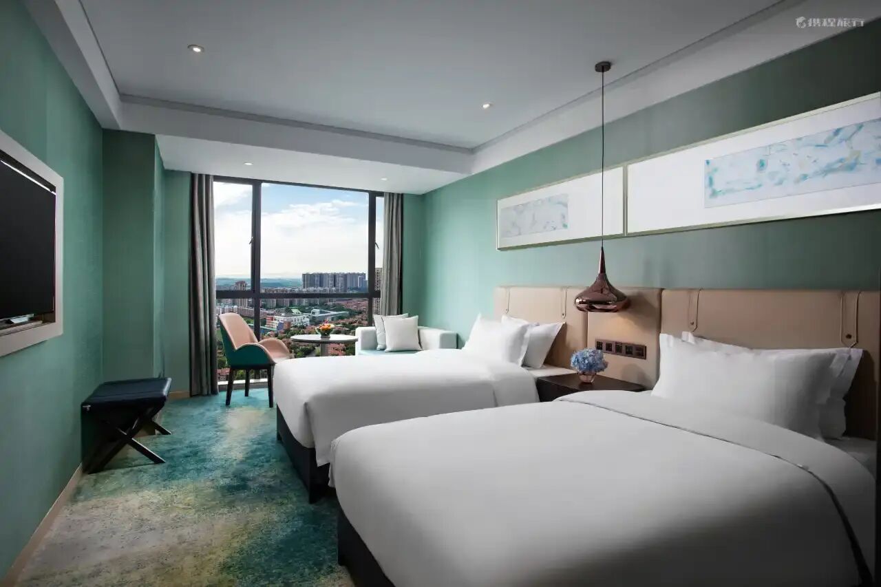 客房情况:酒店拥有100余间装修别致的客房,以浏阳河水系为设计元素,房间宽敞明亮,配置先进的设施设备。