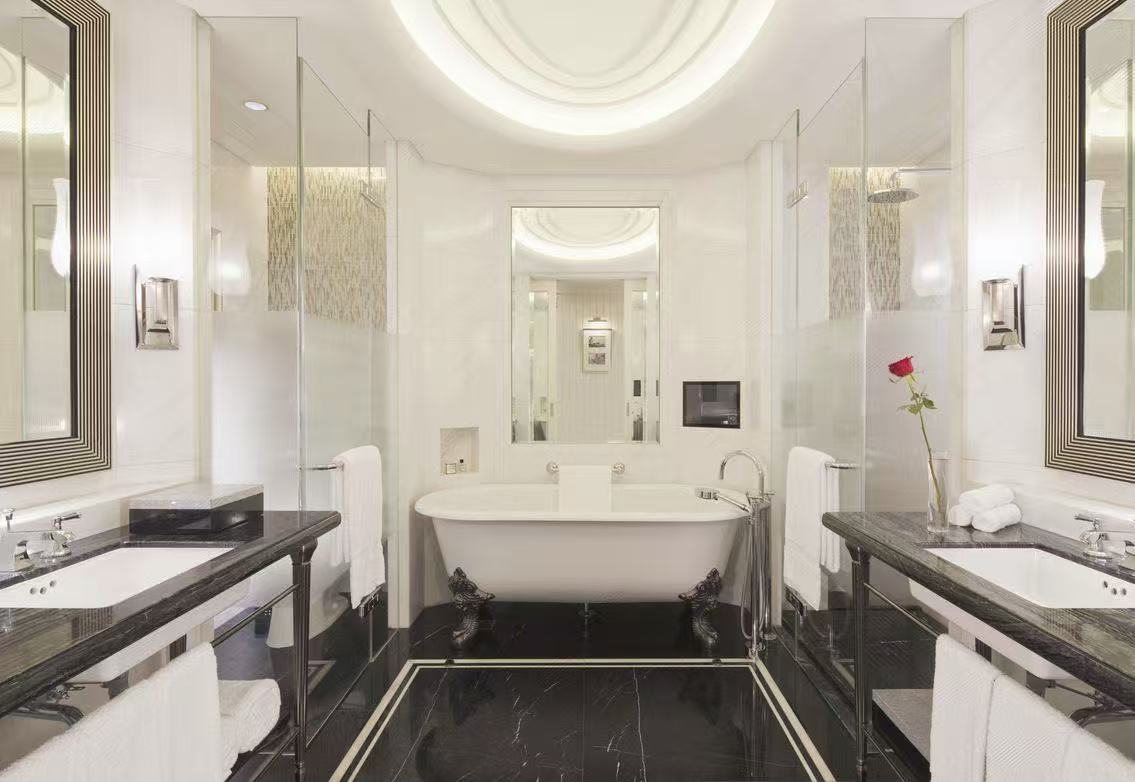 房间装饰融合了艺术装饰风格与现代元素,拥有高天花板、厚实的花朵图案地毯和定制木质家具,营造出温馨典雅的氛围。浴室采用大理石装修,配备独立浴缸和淋浴设施,提供Le Labo品牌洗浴用品。此外,房间还设有Illy胶囊咖啡机、BOSE音响、高速无线网络、37英寸平板电视、迷你吧等现代设施,为客人提供舒适便捷的住宿体验。 客房设施