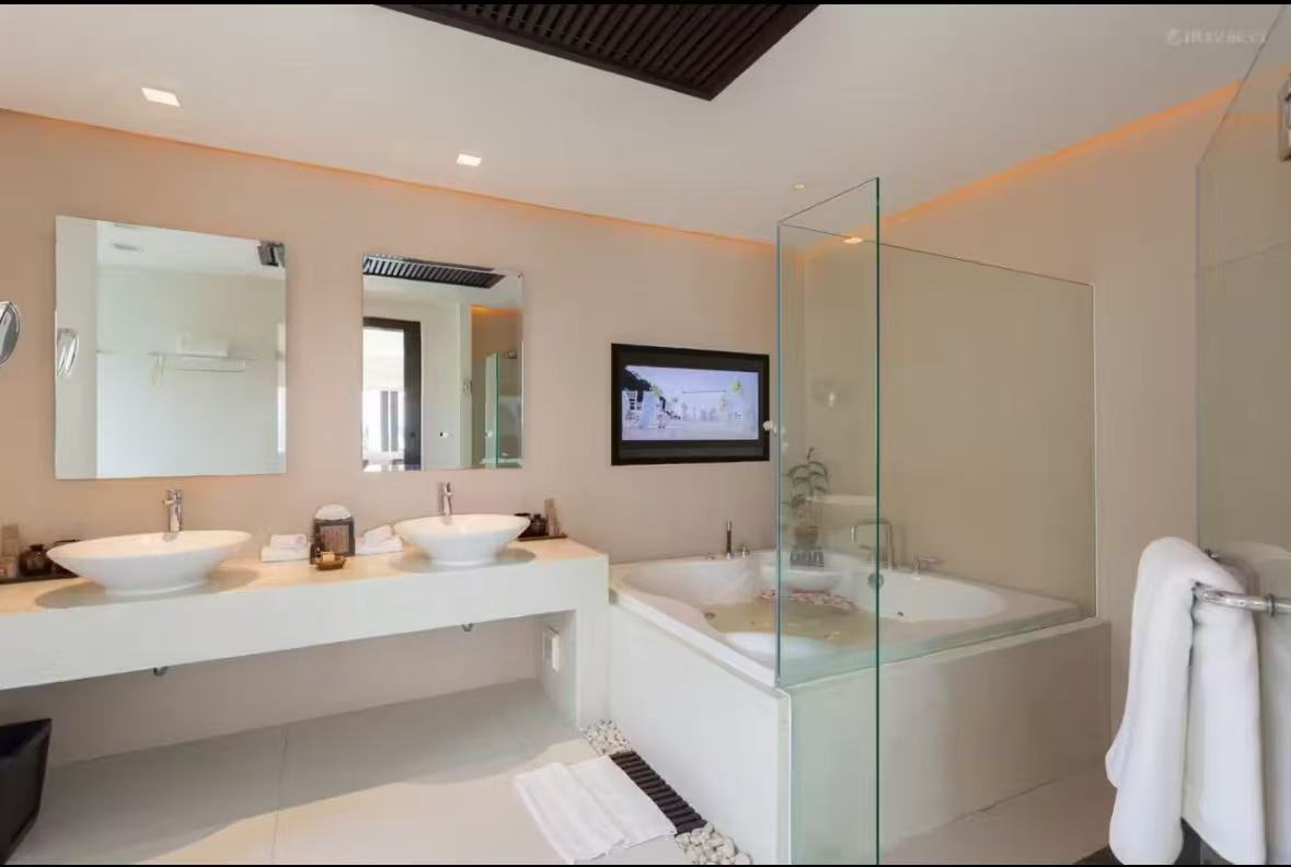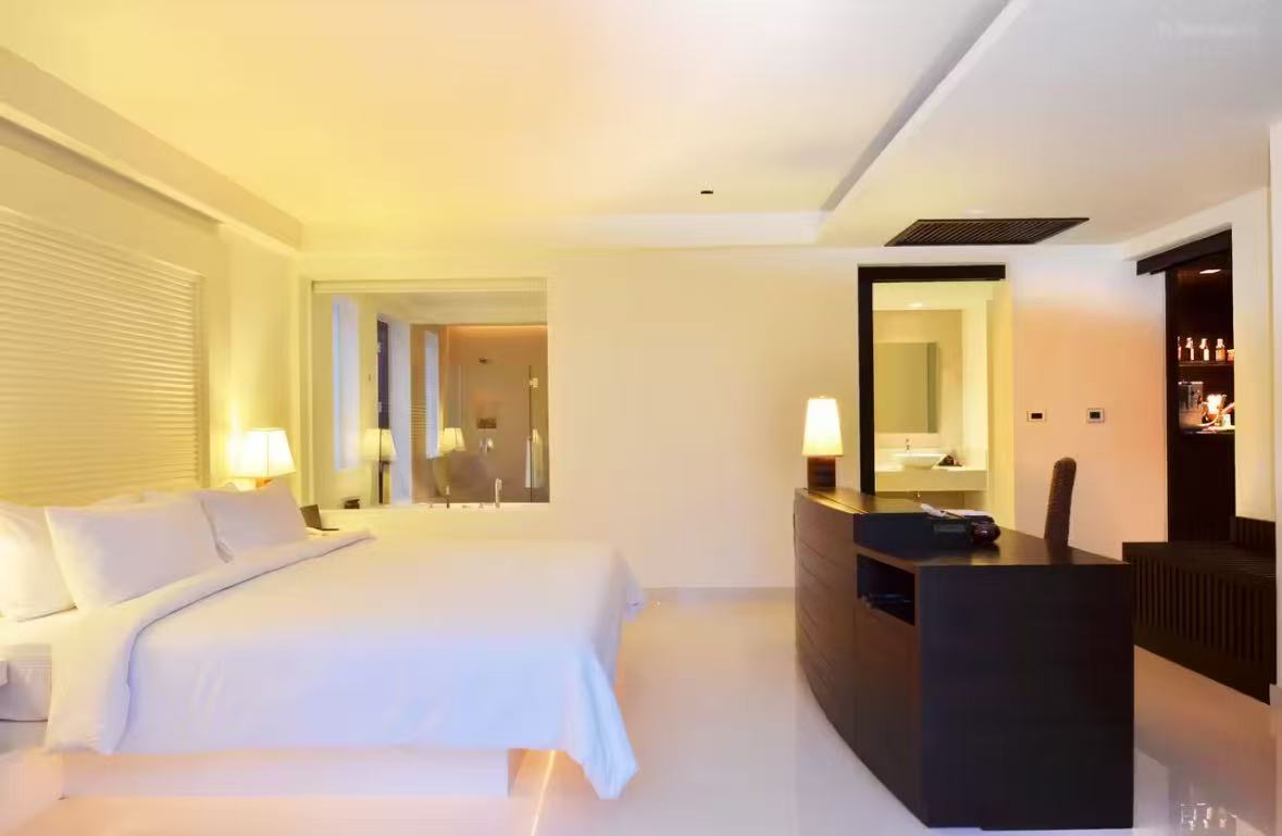 以“私享水疗+专属泳池”为核心,打造沉浸式海岛度假体验。 房间配备2米豪华特大床与高端寝具,主卧衔接私人无边际泳池,可直面热带园林或海景,泳池旁设休闲躺椅与遮阳棚,兼具私密性与景观感。 室内设独立水疗区,含嵌入式按摩浴缸及雨林淋浴,搭配酒店定制精油洗护;还配备智能影音系统、独立客厅、迷你吧(含高端饮品)、私人保险箱及高速WiFi。 专属礼遇涵盖24小时私人管家、每日双人定制早餐(可送餐至泳池)、免费欢迎果盘与香槟,及水疗中心项目折扣,整体将奢华舒适与水疗放松深度融合,适配高端度假需求。 水疗泳池套房72平米 有窗 1层 |