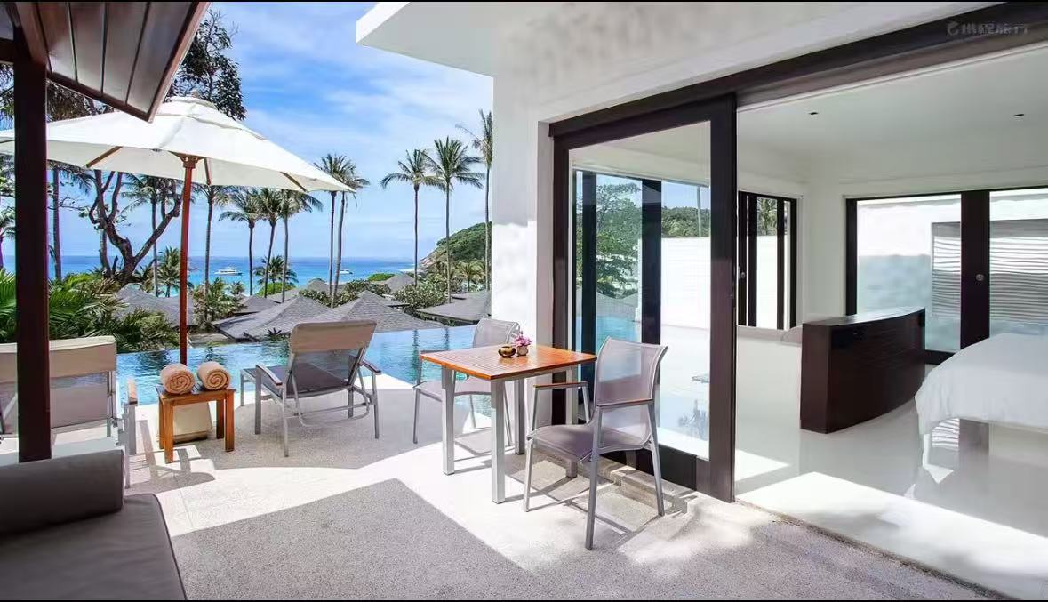 该套房为酒店顶级房型,面积约180㎡,含独立卧室、私人泳池及全景露台,适合家庭或4人同行。 空间布局:2间独立卧室均配2米大床及高端床品,主卧设步入式衣帽间与独立卫浴,次卧含干湿分离卫浴;公共区域含开放式客厅与嵌入式迷你吧,配备Bose音响、智能控制系统及高速WiFi。 特色设施:专属私人泳池(约20㎡)配光纤照明与休闲躺椅,露台可俯瞰热带园林或海景,部分房型直面Batok Bay;室内外双淋浴系统,卫浴用品选用泰国本土高端有机品牌。 尊享服务:入住享欢迎果盘与香槟、24小时管家服务、每日双人Spa体验(需预约),可免费使用浮潜设备及瑜伽课程,支持别墅内私人用餐定制。 两卧室至尊豪华泳池套房105平米 有窗 1层 |