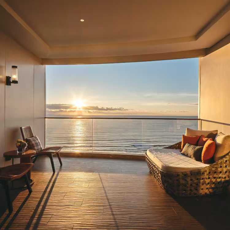 三亚海棠湾仁恒皇冠假日度假酒店雄伟壮观的设计,犹如一艘巨型豪华邮轮驶进美丽的海棠湾,三维通风设计让您不出房间也能感受徐徐海风。酒店地理位置得天独厚,毗邻国际免税店,步行约10分钟。