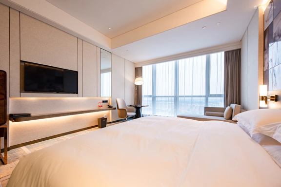 面积 61平方米 楼层 22-25层 网络 Wi-Fi免费 窗户 有窗 吸烟政策 禁烟 床型 1张特大床2米加床:费用请详询酒店 餐食 2份早餐 加早:西式、中式早餐 ¥98.00 /人 洗浴用品 牙刷 牙膏 沐浴露 洗发水 护发素 香皂 浴帽 梳子 剃须刀 客房布局和家具 沙发 衣柜/衣橱 书桌 茶几 休闲椅 清洁服务 每日打扫 打扫工具 熨衣设备 室外景观 湖景 城景 网络与通讯 客房WIFI免费 电话 国际长途电话 卫浴设施 浴缸 私人浴室 私人卫生间 吹风机 浴室化妆放大镜 浴衣 毛巾 浴巾 24小时热水 拖鞋 食品饮品 瓶装水免费 电热水壶 迷你吧 客房设施 空调 电风扇 手动窗帘 遮光窗帘 床具:毯子或被子 备用床具 空气净化器 媒体科技 电视机 有线频道 卫星频道 音响 智能门锁 厨房用品 冰箱 便利设施 管家服务 电子秤 房内保险箱 针线包 开夜床 多种规格电源插座 110V电压插座 220V电压插座 雨伞 行政酒廊待遇 政策与服务 不可取消 订单预订成功后不可取消。若未入住将收取您全额费用¥1072(如用优惠券则以券后支付价为准)。订单需等酒店或供应商确认后生效,订单确认结果以携程短信、邮件或app通知为准,如订单不确认将全额退款至您的付款账户。 立即确认 预订此房型后可快速确认订单。 在线付 房费需提前支付,可使用银行卡、支付宝、微信等进行付款。 儿童及加床 该房型欢迎携带儿童入住 婴儿床及加床政策 超过入住人数时,可能涉及额外费用,收费规则如下