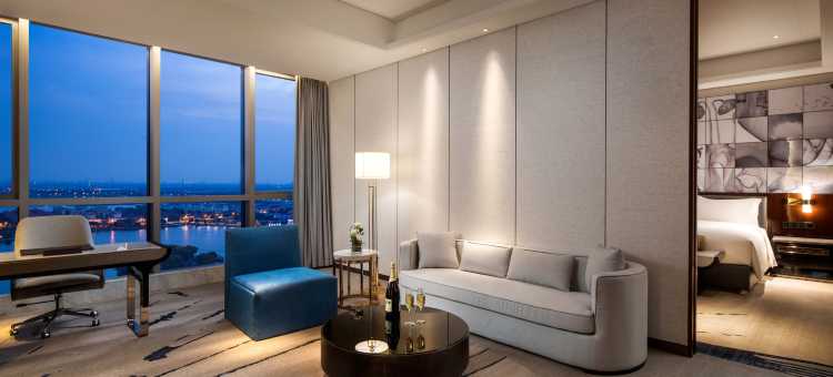 面积 108平方米 楼层 22-23层 网络 Wi-Fi免费 窗户 有窗 吸烟政策 禁烟 床型 1张特大床2米加床:费用请详询酒店 餐食 无早餐 加早:西式、中式早餐 ¥98.00 /人 洗浴用品 牙刷 牙膏 沐浴露 洗发水 护发素 香皂 浴帽 梳子 剃须刀 客房布局和家具 沙发 衣柜/衣橱 书桌 茶几 休闲椅 清洁服务 每日打扫 打扫工具 熨衣设备 室外景观 湖景 城景 网络与通讯 客房WIFI免费 电话 国际长途电话 卫浴设施 浴缸 私人浴室 私人卫生间 吹风机 浴室化妆放大镜 浴衣 毛巾 浴巾 24小时热水 拖鞋 食品饮品 瓶装水免费 电热水壶 迷你吧 客房设施 空调 电风扇 手动窗帘 遮光窗帘 床具:毯子或被子 备用床具 空气净化器 媒体科技 电视机 有线频道 卫星频道 音响 智能门锁 厨房用品 冰箱 便利设施 管家服务 电子秤 房内保险箱 针线包 开夜床 多种规格电源插座 110V电压插座 220V电压插座 雨伞 行政酒廊待遇 政策与服务 不可取消 订单预订成功后不可取消。若未入住或过时取消将扣除担保费用支付给酒店。携程会根据您的担保方式,暂扣¥1868(如用优惠券则以券后支付价为准)用于担保,到店后线下支付房费。 立即确认 预订此房型后可快速确认订单。 到店付 担保是从账户中暂扣一部分金额用于提前锁定房源,预计离店后4个工作日内退款,房费需到店另付。 儿童及加床 该房型欢迎携带儿童入住 婴儿床及加床政策 超过入住人数时,可能涉及额外费用,收费规则如下