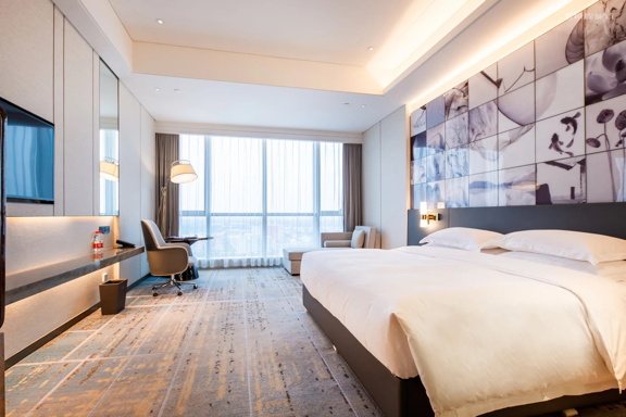 面积 42平方米 楼层 17-21层 网络 Wi-Fi免费 窗户 有窗 吸烟政策 禁烟 床型 1张特大床2米加床:费用请详询酒店 餐食 2份早餐 加早:西式、中式早餐 ¥98.00 /人 洗浴用品 牙刷 牙膏 沐浴露 洗发水 护发素 香皂 浴帽 梳子 剃须刀 客房布局和家具 沙发 衣柜/衣橱 书桌 休闲椅 清洁服务 每日打扫 打扫工具 熨衣设备 室外景观 湖景 城景 网络与通讯 客房WIFI免费 电话 国际长途电话 卫浴设施 浴缸 私人浴室 私人卫生间 吹风机 浴室化妆放大镜 浴衣 毛巾 浴巾 24小时热水 拖鞋 食品饮品 瓶装水免费 电热水壶 迷你吧 客房设施 空调 电风扇 手动窗帘 遮光窗帘 床具:毯子或被子 备用床具 空气净化器 媒体科技 电视机 有线频道 卫星频道 音响 智能门锁 厨房用品 冰箱 便利设施 管家服务 电子秤 房内保险箱 针线包 开夜床 多种规格电源插座 110V电压插座 220V电压插座 雨伞 政策与服务 不可取消 订单预订成功后不可取消。若未入住将收取您全额费用¥824(如用优惠券则以券后支付价为准)。订单需等酒店或供应商确认后生效,订单确认结果以携程短信、邮件或app通知为准,如订单不确认将全额退款至您的付款账户。 立即确认 预订此房型后可快速确认订单。 在线付 房费需提前支付,可使用银行卡、支付宝、微信等进行付款。 儿童及加床 该房型欢迎携带儿童入住 婴儿床及加床政策 超过入住人数时,可能涉及额外费用,收费规则如下