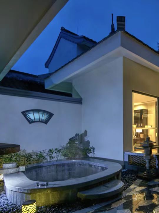 · 除了散布在园林中的公共泡池,度假村还提供多种带有独立露天温泉泡池的客房和别墅。