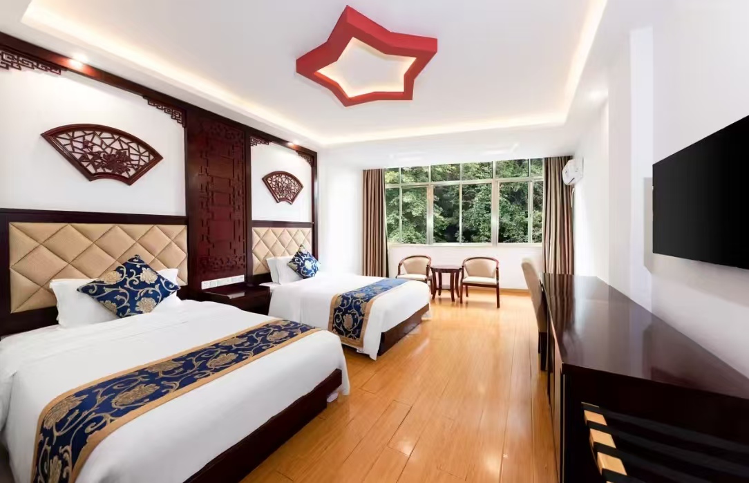 酒店地处茨坪景区中心,位于茨坪毛泽东同志旧居正对面,酒店紧靠茨坪挹翠湖