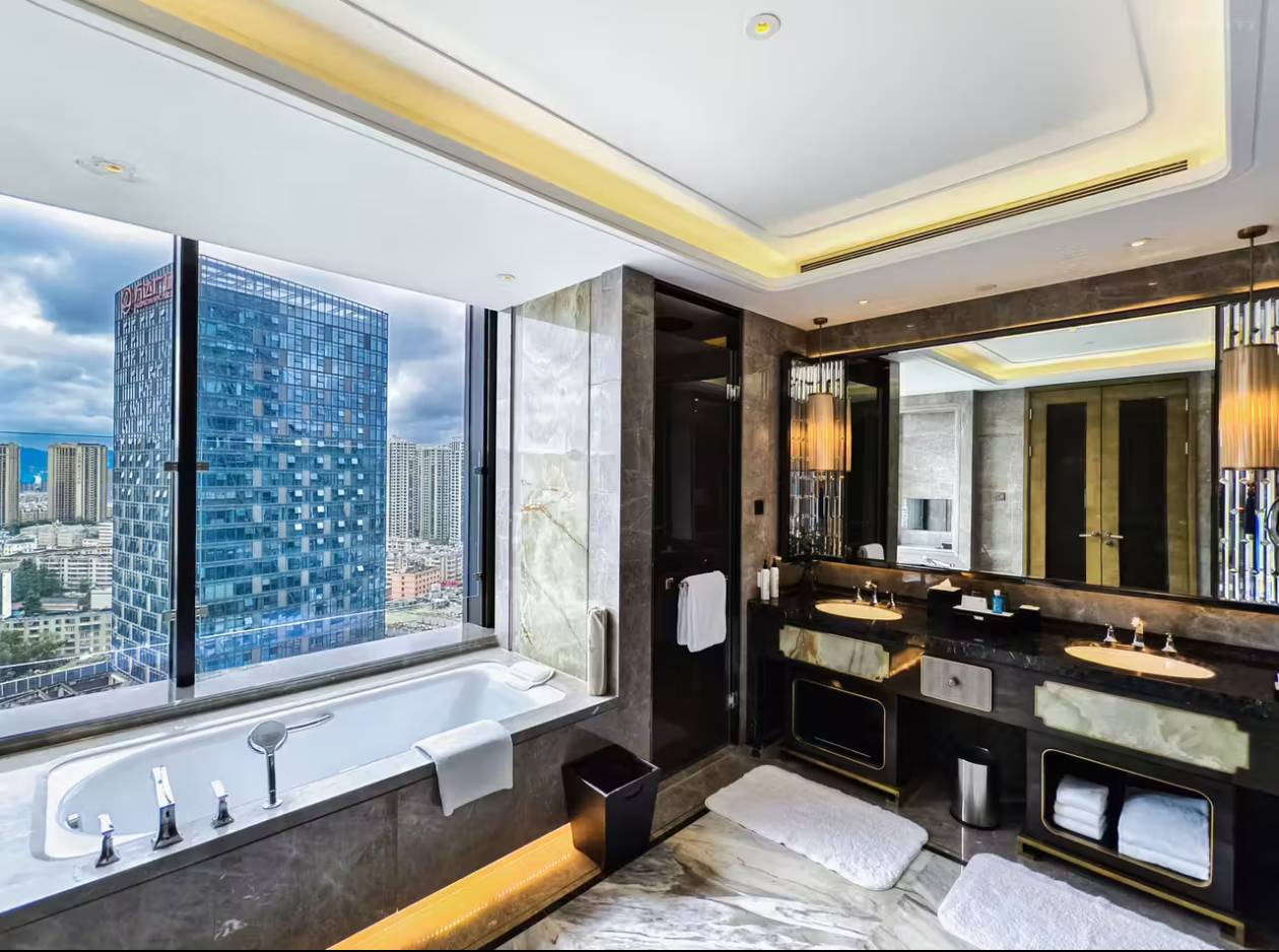作为酒店的“邻居”,万达广场集购物、餐饮、娱乐于一体。商场内汇聚了国内外品牌,地下一层的“云南美食街”可一站式品尝过桥米线、汽锅鸡等滇味佳肴;顶层的万达影城配备IMAX影厅,适合观影放松。此外,万达广场的夜景灯光璀璨,与酒店的空中花园露台形成呼应,是拍摄城市夜景的好去处 。
