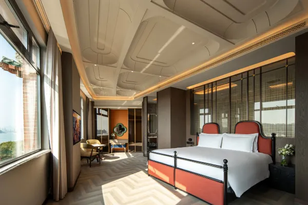 鹭江宾馆,是厦门标志性风貌建筑。名列改革开放后厦门三家酒店之一,现如今是厦门城市文化与历史风貌体验型文物级酒店。 作为鹭岛久负盛名的老牌酒店之一,鹭江宾馆多年来名列厦门酒店入住率前茅。前丹麦女王、李光耀、陈香梅、赵雅芝等众多中外政商名流也曾造访并赞誉有加,刘海粟先生曾为鹭江宾馆亲笔题词:“宾至如归”。作为鹭江道上的地标建筑,它典藏了鹭江两岸百年来的风华,又演绎出中西合璧、传统与现代交织的厦门风情,您下榻的,不仅是酒店,也是时光。 时光隧道1958,是鹭江宾馆的一颗璀璨明珠。每位踏入这里的客人,都能在这方寸之间,聆听城市的心跳,感受时空的故事。 鹭江宾馆将鼓浪屿景观“搬进”房间。晨光初照时,您一睁眼便能饱览鼓浪屿风光。在盥洗室,您在洗漱同时,亦能尽情欣赏鼓浪屿的绝美景色。 鹭江宾馆享有 “食在鹭江”的经典美誉。七楼是中外游客和厦门人民情有独钟的观景餐厅,是集美食与美景于一体的绝美殿堂,常年名列各大口碑排行榜前列。鹭江宾馆从万千食材到千变万化的烹饪手法,追求细节精致,在饱腹之上,满足味蕾想象,跨越时间与山海,寻味鹭江风味。