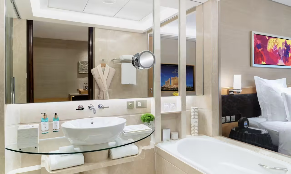 地理位置优越、服务贴心细致、娱乐设施丰富、餐饮选择多样、购物体验绝佳、房间品质高端