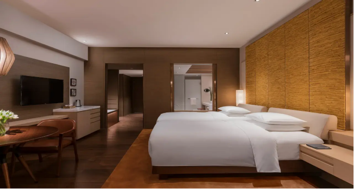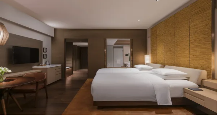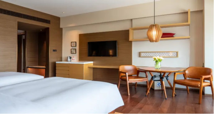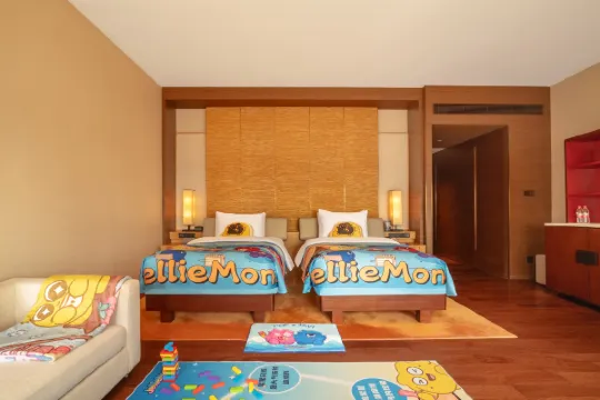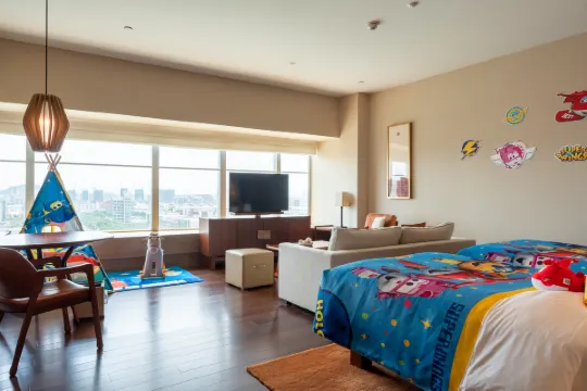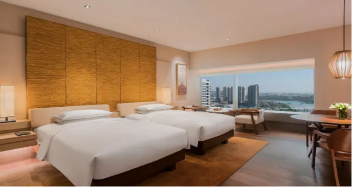 房间:酒店房间类型丰富且体验绝佳。有可俯瞰城市与湖景的豪华客房,空间雅致,设施齐全,营造舒适的休憩环境。还有充满童趣的主题客房,以缤纷色彩与可爱装饰打造,配备童趣设施,是亲子家庭的欢乐天地,在不同风格的房间中尽享温馨与惬意。