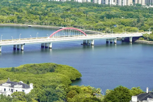 五缘湾位于福建省厦门市湖里区北部,介于高崎国际机场与翔安海底隧道之间,占地面积约500公顷,拥有湿地公园、温泉、海湾等自然资源及五座跨海大桥,因策划大师王志纲将其比作“外婆的澎湖湾”而闻名。该区域规划涵盖商务、居住等功能区,设有环湾步行道串联酒店、商业街等设施,免费开放观鸟、垂钓等休闲活动。