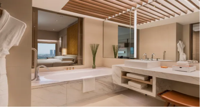 公共区域:酒店公共区域尽显奢华与格调。大堂设计精美,装饰考究,舒适的休憩空间与艺术感十足的陈设相得益彰,让您一踏入酒店便感受到尊贵礼遇。不同功能的公共区域布局合理,无论是等候、交流还是短暂休憩,都能让您在优雅的环境中享受惬意时光,处处彰显酒店的高端品质与贴心服务。
