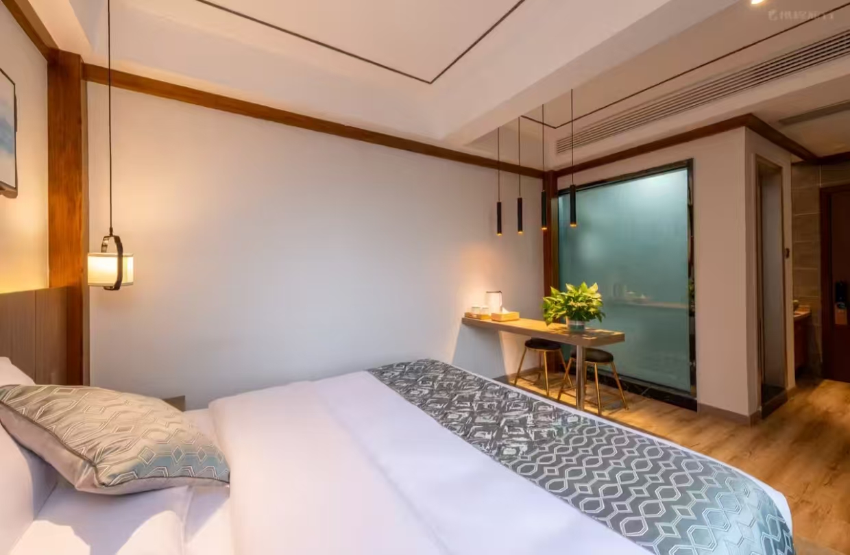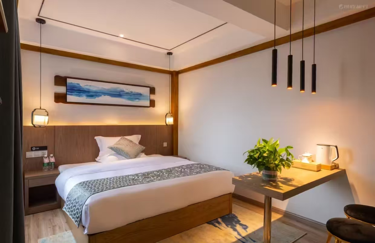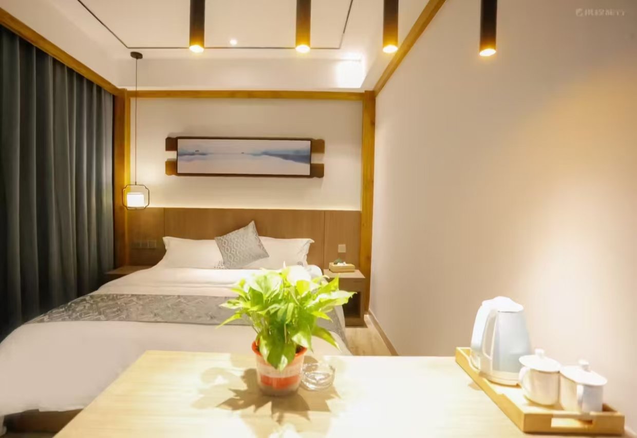 静谧高级大床房加床费用:该房型不可加床 清洁服务: 每日打扫、打扫工具需前台索要、洗衣机 洗浴用品: 牙刷免费、牙膏免费、沐浴露、洗发水、护发素、香皂、浴帽免费、梳子免费、剃须刀 厨房用品: 厨房、厨房用具、电饭煲、微波炉需前台索要、烤箱、调味品、餐具、厨房清洁用品 客房布局和家具: 衣柜/衣橱、书桌、餐桌、用餐区、挂墙装饰画/字画 网络与通讯: 客房WIFI免费、客房有线宽带免费 食品饮品: 咖啡壶/茶壶、茶包、电热水壶、迷你吧免费 卫浴设施: 浴缸或淋浴、私人浴室、私人卫生间、吹风机、浴室化妆放大镜、毛巾、浴巾、24小时热水、拖鞋免费 室外景观: 山景 客房设施: 空调免费、手动窗帘、遮光窗帘、地毯、床具:鸭绒被、床具:毯子或被子、备用床具免费 媒体科技: 电视机、智能门锁 便利设施: 管家服务、衣架、单一规格电源插座、多种规格电源插座、220V电压插座 儿童政策: 该房型欢迎携带儿童入住 婴儿床及加床政策该房型不提供加床、不提供加婴儿床