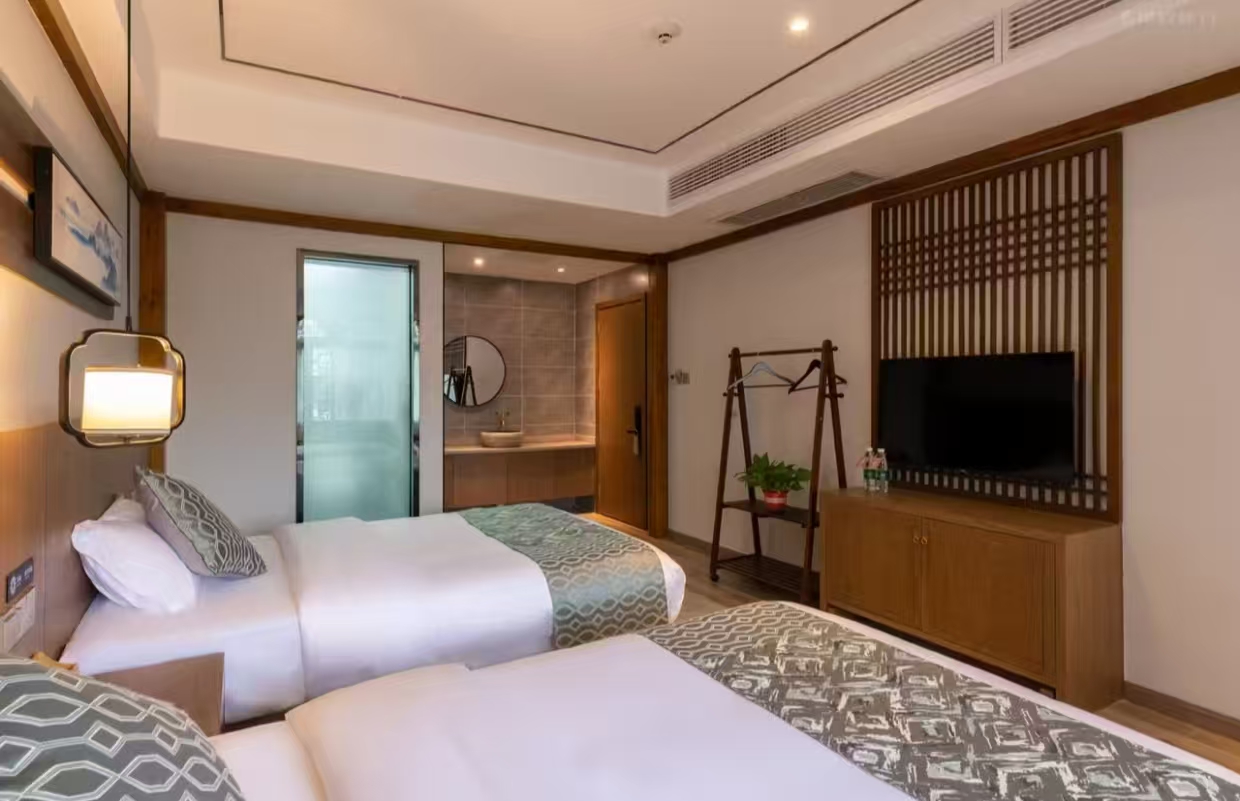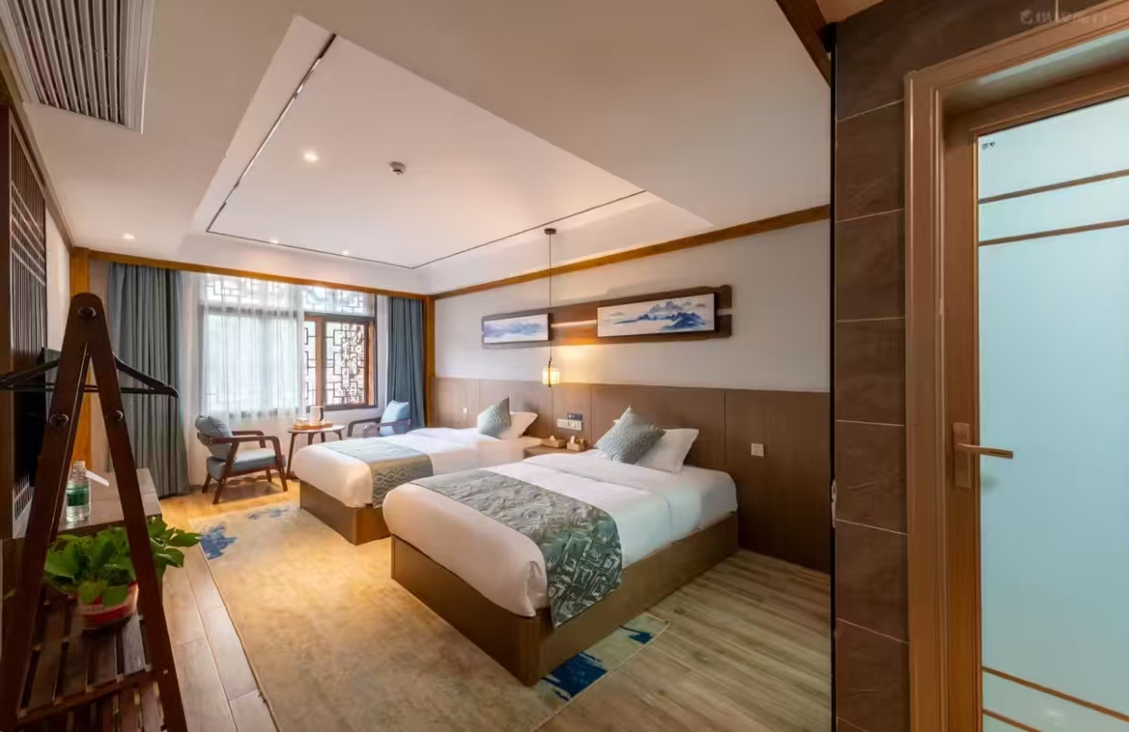 恬谧豪华双床房加床费用:该房型不可加床 清洁服务 每日打扫、打扫工具需前台索要、洗衣机 洗浴用品 牙刷免费、牙膏免费、沐浴露、洗发水、护发素、香皂、浴帽免费、梳子免费、剃须刀 厨房用品 厨房、厨房用具、电饭煲、微波炉需前台索要、烤箱、调味品、餐具、厨房清洁用品 客房布局和家具 衣柜/衣橱、书桌、餐桌、用餐区、挂墙装饰画/字画 网络与通讯 客房WIFI免费、客房有线宽带免费 食品饮品 咖啡壶/茶壶、茶包、电热水壶 卫浴设施 浴缸或淋浴、私人浴室、私人卫生间、吹风机、浴室化妆放大镜、毛巾、浴巾、24小时热水、拖鞋免费 室外景观 山景 客房设施 空调免费、手动窗帘、遮光窗帘、地毯、床具:鸭绒被、床具:毯子或被子、备用床具免费 媒体科技 电视机、智能门锁 便利设施 管家服务、衣架、单一规格电源插座、多种规格电源插座、220V电压插座 儿童政策 该房型欢迎携带儿童入住 婴儿床及加床政策该房型不提供加床、不提供加婴儿床