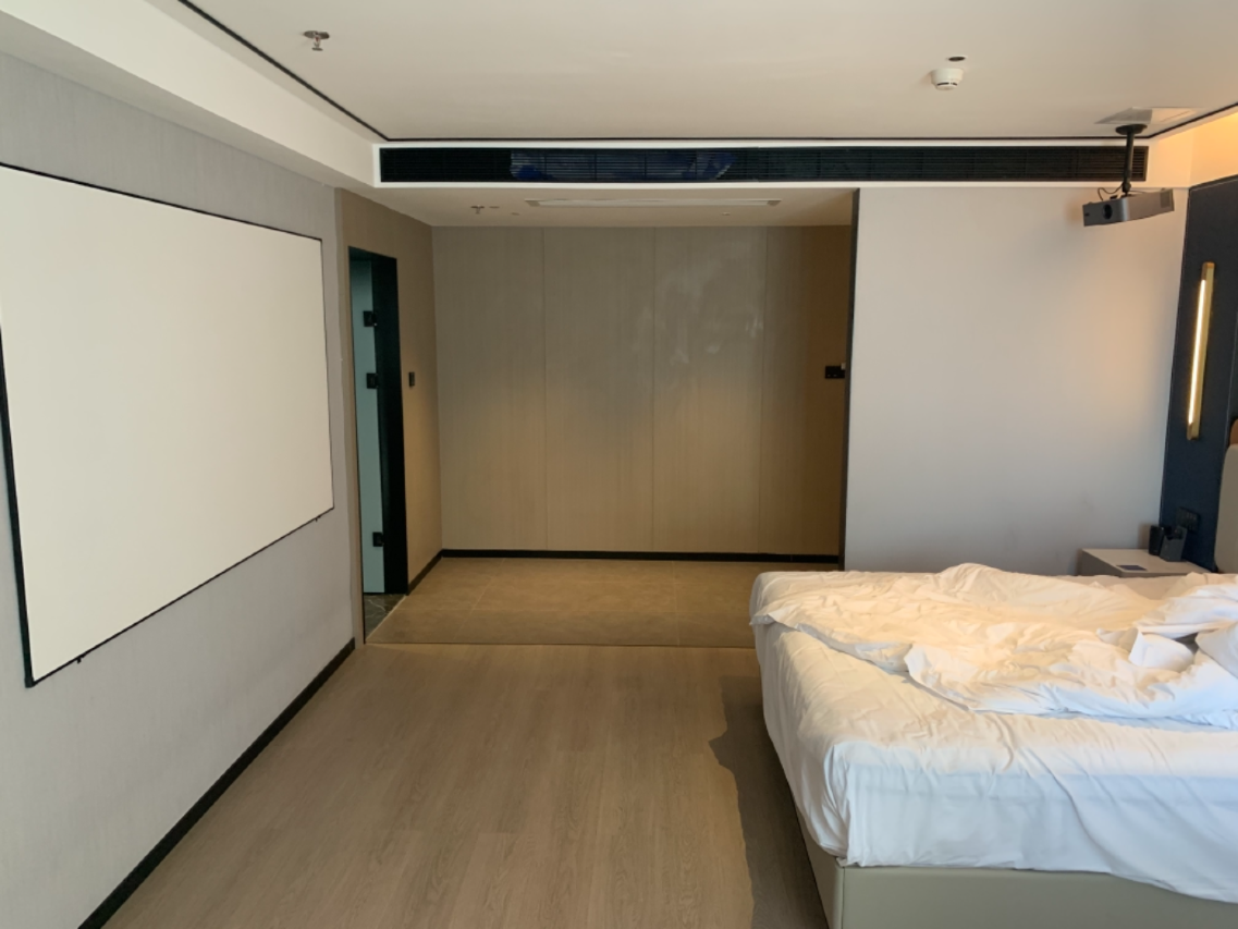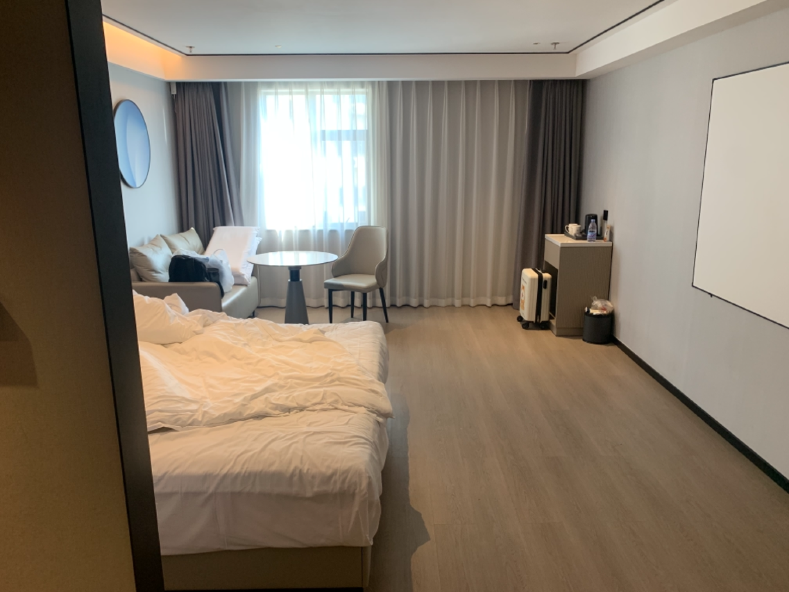 增值服务丰富,配备24小时免费健身房与洗衣房,洗衣烘干全程免费。入住有欢迎茶水,每晚8点至10点供应晚安粥,扫码可申领洗面奶、剃须刀等十项洗漱用品。客房内支持语音控制灯光、窗帘等智能操作,部分房型含巨幕投影,满足多样化需求。