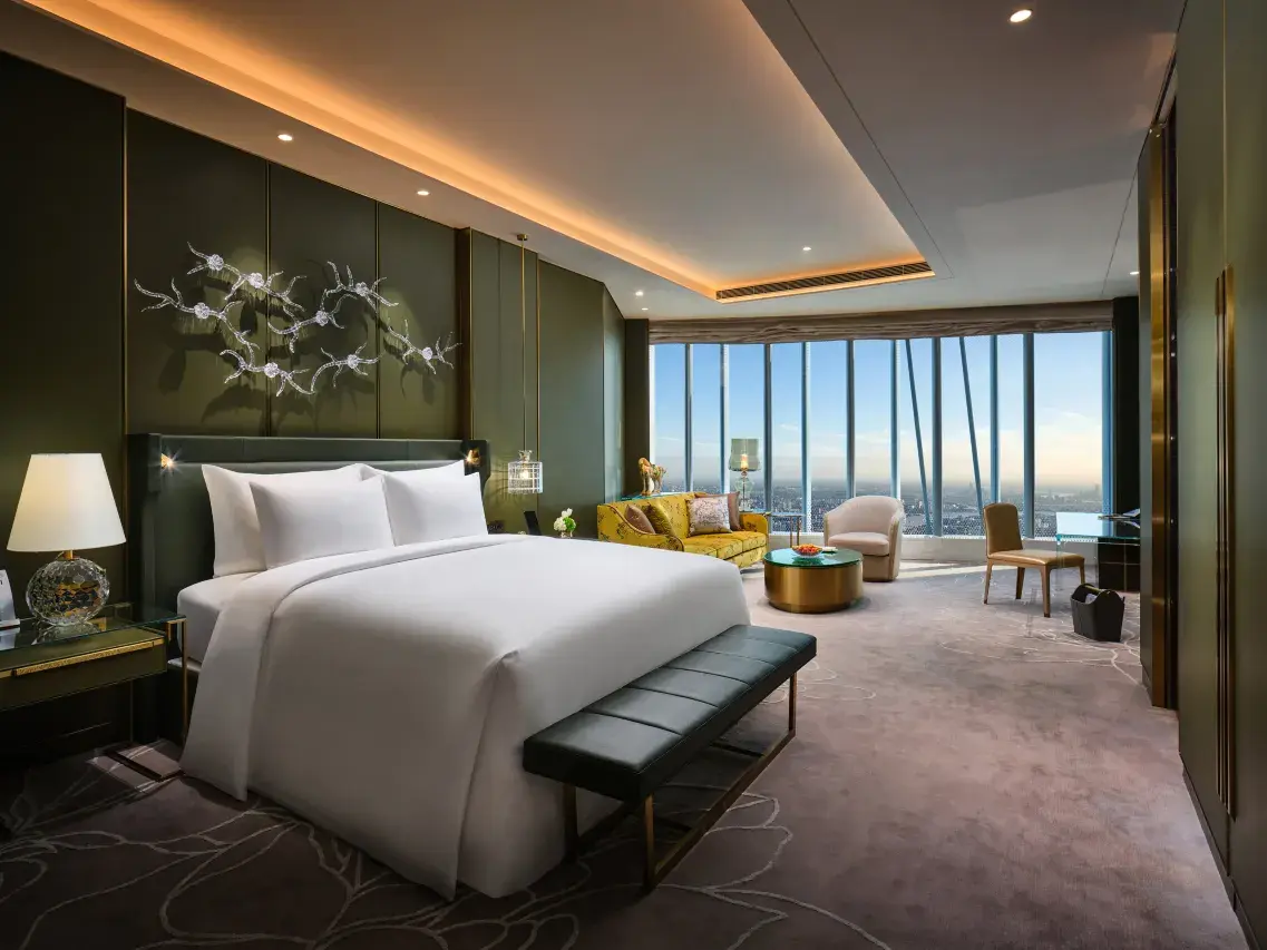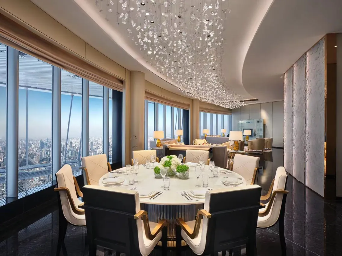 上海中心J酒店位于632米高的上海中心大厦顶端,陆家嘴核心地段,可将上海全景尽收眼底。在这里,宾客可体会“会当凌绝顶”的壮志豪情,远眺可见虹桥机场的繁忙及长江东入海的大气雍容;近观则能俯瞰繁华都市景观以及东方明珠塔、外滩等上海地标,感受浦江两岸从古至今的历史变迁。 酒店融合古今中外之长,集合多种艺术之美,给予宾客俯瞰上海的全新视野,从设计、旅行、生活、美食和美酒、科技和服务艺术出发,打造出一座云端私人艺邸,展现具有现代东方特色的旅居体验。