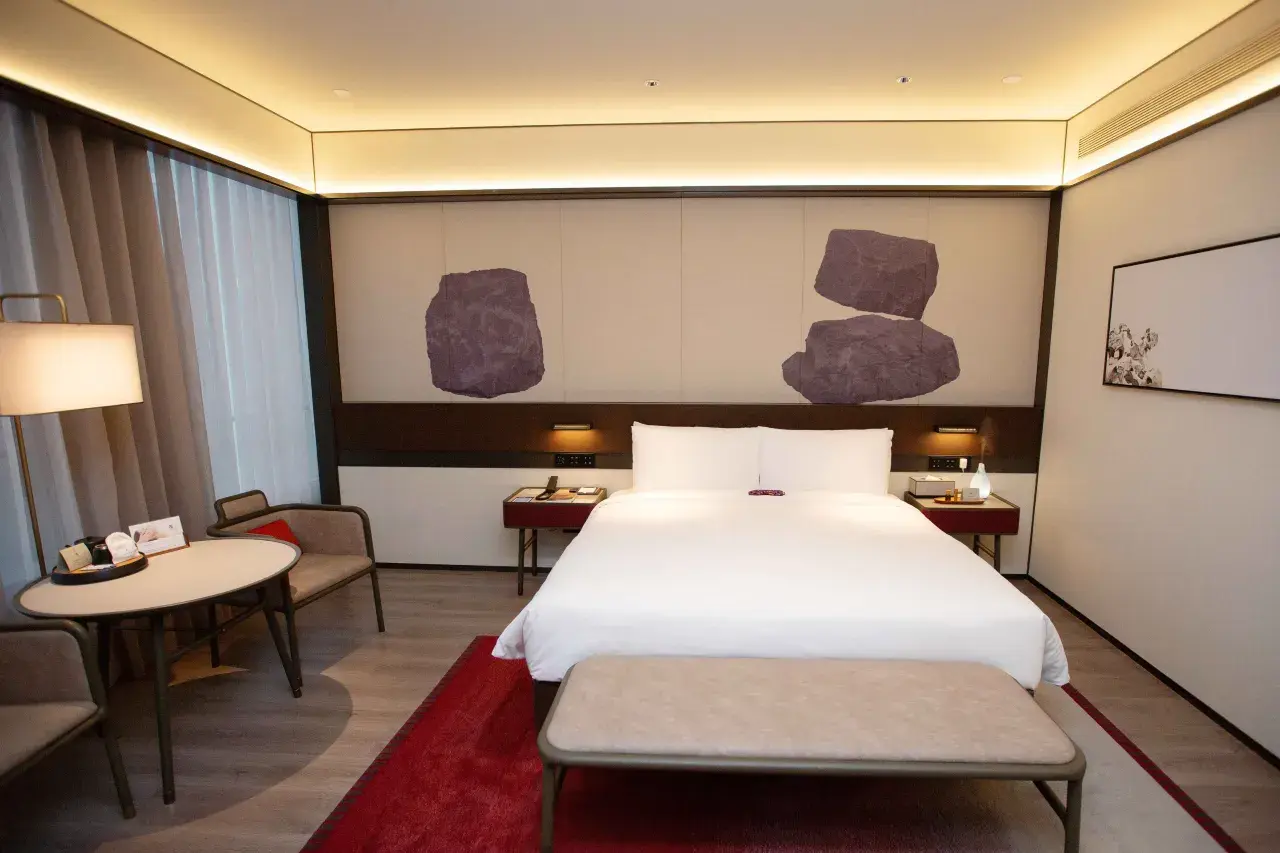 上海古北禧玥酒店坐落于高档奢华的黄金城道毗邻高岛屋,周边有地铁2、10号线,近在咫尺的程十发美术馆和虹桥公园,更为其增添了文化和艺术气息。酒店共设有173间装修典雅的豪华客房,健身房、餐厅、多功能会议室、黑胶唱片、普拉提房、水疗、酒吧等配套设施一应俱全。聚焦于当代商旅人士许久的上海古北禧玥酒店,是华住酒店集团旗下高端商务酒店品牌的代表。简而未减,华而不宣是这家旗舰店独特的思维方式。在空间和设计等元素上,成功呈现了现代中式美学,巧妙的将传统与现代融汇贯通。在探寻本真的东方生活时,缔造匠心精神并提供细致温润的贴心服务,为您开启新东方雅致生活。全行政楼层服务礼遇,客房畅享mini吧多种饮品和小食,并且房内配备Nespresso咖啡机,让您活力满满。酒店不仅拥有传统设计的客房更拥有无敌的景观,在酒店12楼还有沪上知名的黑珍珠二钻餐厅-西郊5号,让您可以品尝到正宗美味的菜品。