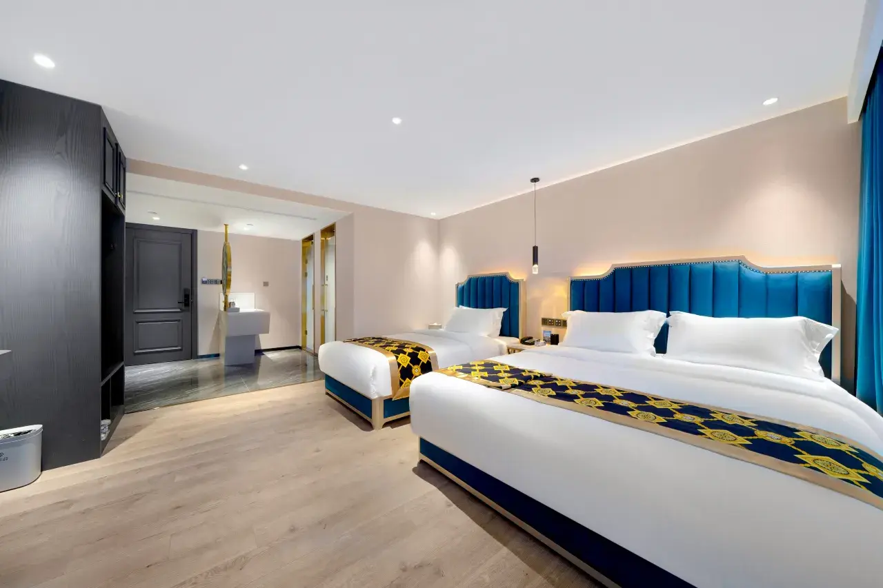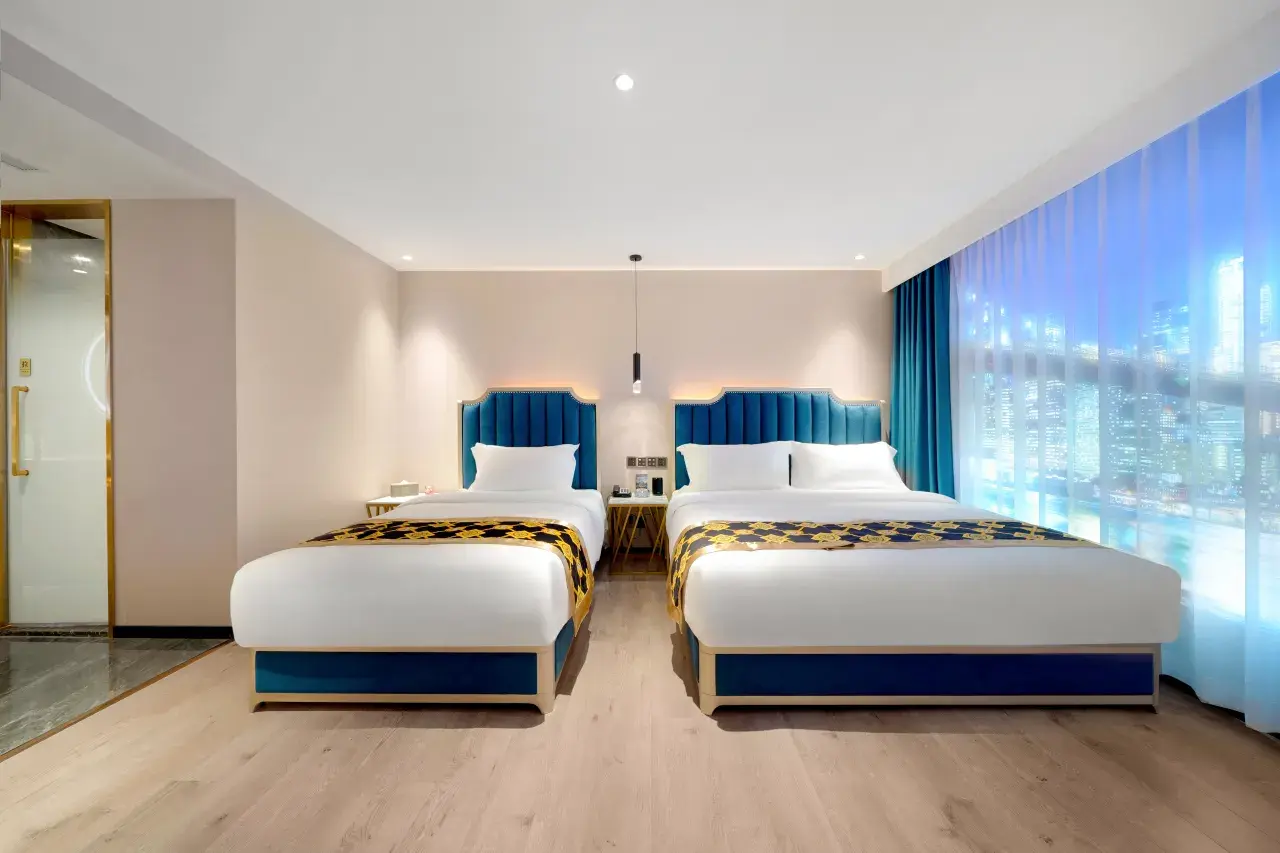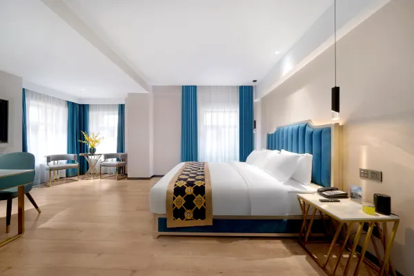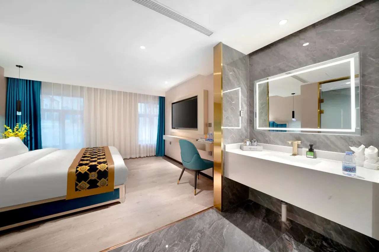 酒店坐落于美丽的冰城哈尔滨,地处哈尔滨繁华旅游街区中央大街和东风街交口处.出酒店就是中央大街。闹中取静,舒适奢华。距离哈尔滨著名景点圣索菲亚教堂步行5分钟,步行到红砖接早市3分钟,防洪纪念塔步行5分钟,交通便利,紧邻松花江畔,太阳岛,极地水族馆。夏季避暑游江,冬季赏灯观雪,酒店房型多种多样,有智能大床房,智能家庭房等房间可满足不同客人的需求,酒店设施齐全,智能小度、空调、24小时热水、独立卫生间、洗漱用品等一应俱全,房间宽敞舒适,智能系统住宿体验,每间房还拥有独立高速WIFI与干湿分区的洗手间。可观街赏景