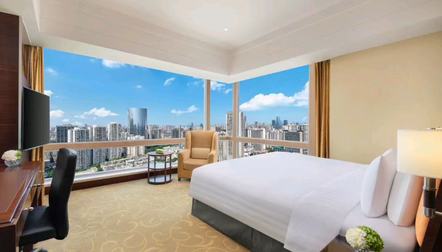 酒店拥有36个楼层,593间宽敞华丽、设计现代的客房及套房。酒店房间面积均在42平方米以上,最大总统套房面积为276平方米。此外,酒店另配有26间服务公寓,以满足长住客人和家庭入住的需求。酒店拥有总面积近4,500平方米的卓越完善的会议设施,其中包含2, 100平方米,层高近9米的大宴会厅。另有500平方米的宴会厅,和其它15个设计独特的多功能厅及一个演播厅能满足不同规模的会议及宴会需求。