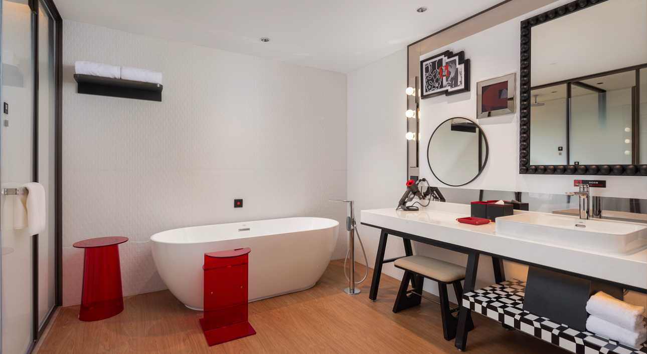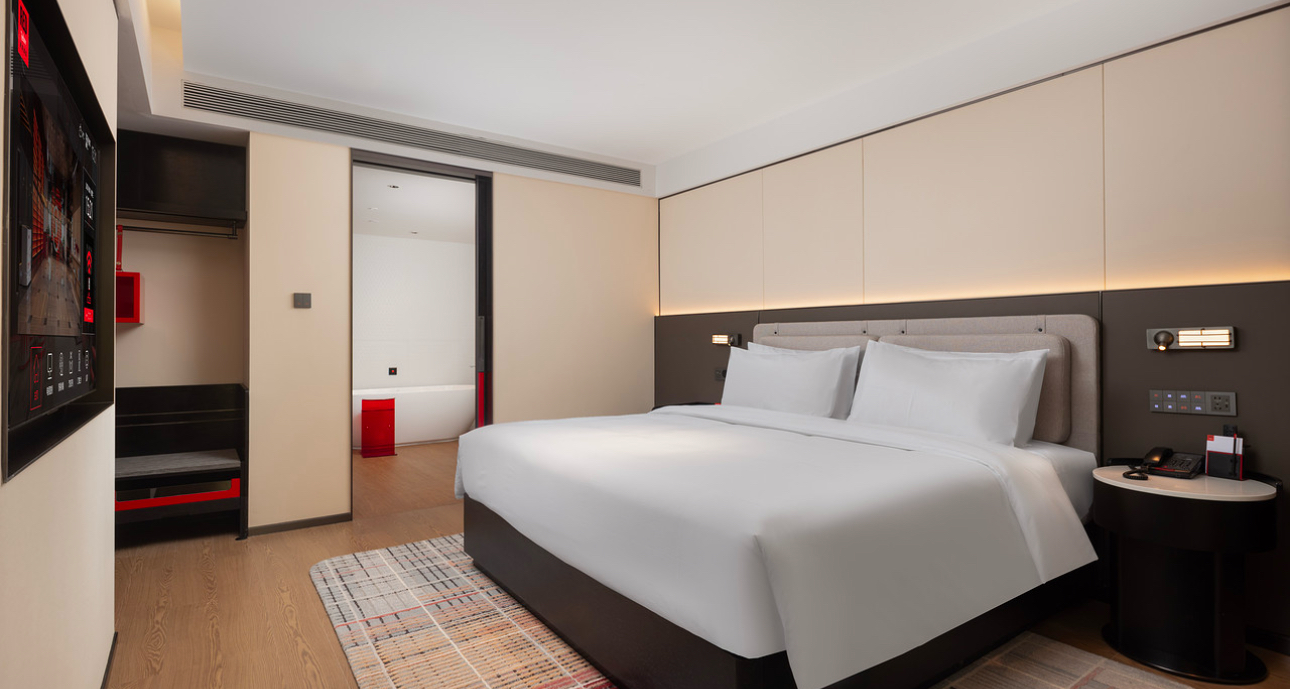 酒店拥有多种房型,包括芮享舒适房、芮享STUDIO、芮享家庭房、芮享豪华房-双床、臻享行政套房等,房间面积34㎡起,部分房型设有洗烘一体机、大冰箱、落地窗等。