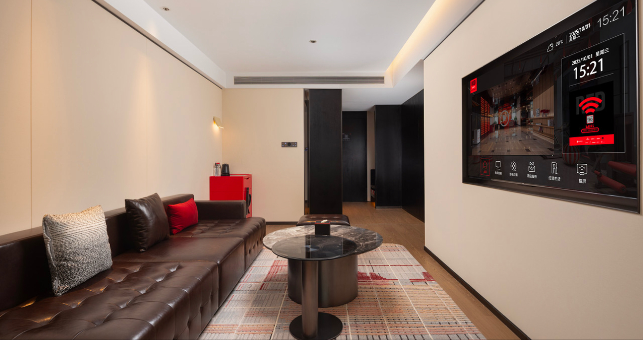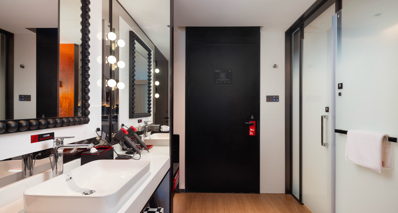 客房服务:每日客房清洁服务,房间配备戴森吹风机、MALIN GOETZ高端洗护用品、智能客控系统等,部分房型设有洗衣机、微波炉、冰箱等。