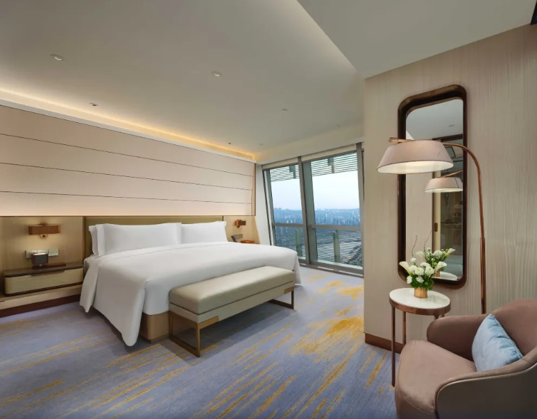 酒店客房舒适宽敞,豪华客房面积从57平方米起,集东方优雅韵味及时尚格调于一身,可眺望嘉陵江及渝中半岛美丽景致,灯火通明的洪崖洞照亮天际。风格迥异的3间餐厅及2间酒吧,为国际商旅及本地品味人士提供至高的餐饮享受。酒店内设高端商务人士专属的丽晶俱乐部,让尊贵宾客尽享便利与舒适。设备完善的健身中心、SPA芳疗师以及室内恒温游泳池,衬着山水之城的美景,打造出城市中的度假绿洲,营造喧嚣中难得的谧静。