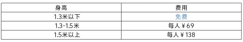 适用人数:2名儿童,身高1.3米(含)以上儿童计入成人数。