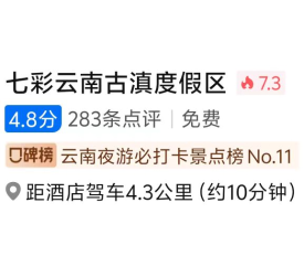 特别补充:古滇度假区内景点接驳巴士,平均每1-2小时发车,发车时间9点到21点。
