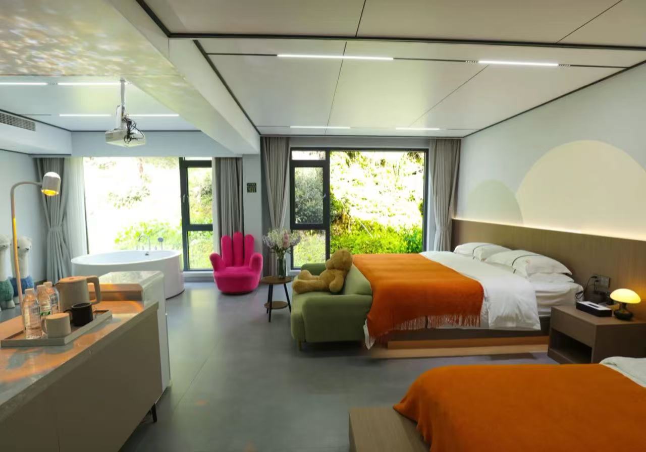 民宿坐落在张家界国家森林公园南大门,得天独厚的地理位置是它的一大亮点。仅需3分钟车程,您就能从民宿直达公园大门口;若是选择步行,沿着林荫小道漫步,15分钟的徒步路程,让您在前往景区的途中,就已经开始感受大自然的气息。周边青山环抱,绿树成荫,清晨,阳光穿透薄雾,洒在民宿的屋檐上,伴随着清脆的鸟鸣声,开启您美好的一天;夜晚,繁星点点,月光如水,微风轻拂,让您在宁静中洗去一身的疲惫。清新的空气,负氧离子满满,每一次呼吸都仿佛是对身心的一次深度净化。来到这里,住宿的选择丰富多样。民宿精心打造了免费停车场,解决您停车的后顾之忧,让自驾出行更加轻松自在。豪华套房内,装饰典雅大气,宽敞的空间搭配精致的家具,独立的卫浴设施、舒适的大床、全景落地窗,让您在享受高品质住宿的同时,还能将窗外的美景尽收眼底;大床房温馨浪漫,柔和的灯光、柔软的床品,营造出宾至如归的氛围;亲子房充满童趣,卡通主题的装饰、儿童专属的小床和玩具,为您和孩子打造欢乐的亲子时光;麻将房则是亲朋好友娱乐休闲的好去处,玩累了,还能直接在舒适的房间里休息;双标房简洁大方,两张舒适的单人床,适合结伴出行的朋友或同事入住。每一间房都经过精心设计与布置,注重细节,只为给您带来舒适的居住体验。当然,这里的美食也不容错过。各种土家珍馐琳琅满目,从山野间采摘的新鲜食材,到农家自养的家禽家畜,经过土家大厨的精心烹制,一道道美味佳肴散发着诱人的香气。那鲜香四溢的腊肉,是经过传统工艺熏制而成,肥而不腻,瘦而不柴;鲜嫩可口的野菜,保留着大自然、纯粹的味道;还有那热气腾腾的土家合菜,汇聚多种食材,口感丰富,满满的都是“妈妈的味道"。在这里,您不仅能品尝到地道的土家风味,更能感受到家的温暖。民宿由一对热情好客的土家夫妇经营,他们传承着土家人的淳朴与善良,用真挚的笑容和贴心的服务,迎接每一位远道而来的客人。无论是为您详细介绍周边的游玩攻略,还是在您需要帮助时及时伸出援手,他们都将竭诚为您服务,让您的张家界之旅充满温馨与美好。朋友,别再犹豫!来那山湾民宿,开启一场与山水相拥、与美食相伴的惬意之旅,让我们在张家界这片人间仙境,留下一段难忘的回忆。