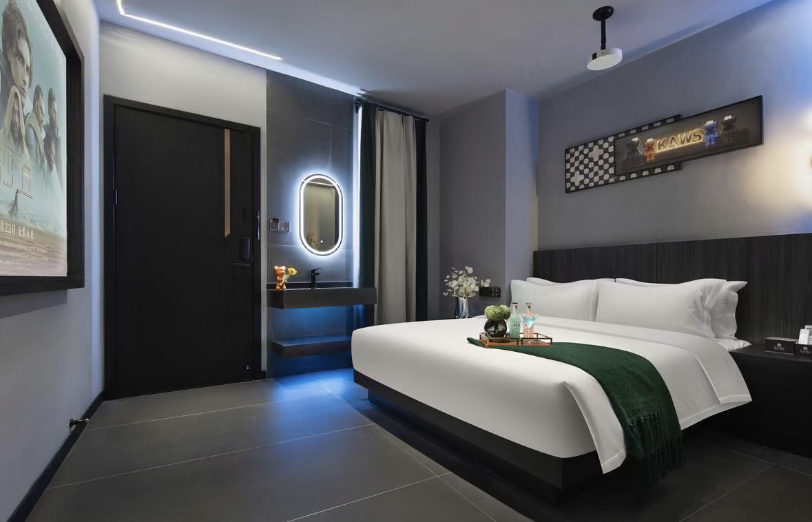 Fele晴天舒适影视大床房是我们的特色房型之一,适合2-3人入住。房间配备超大投影设备和智能客控系统,床品柔软舒适,24小时管家服务保障您的入住体验。根据商家信息,该房型位于酒店四楼,部分住客反馈离地铁站步行约5分钟,周边五一商圈餐饮购物便利。需要注意的是,晴天房型为无窗设计,窗户位于走廊,若您对采光有要求可选择其他带窗房型。关于具体设施细节,建议您直接联系酒店前台确认最新情况。 媒体科技