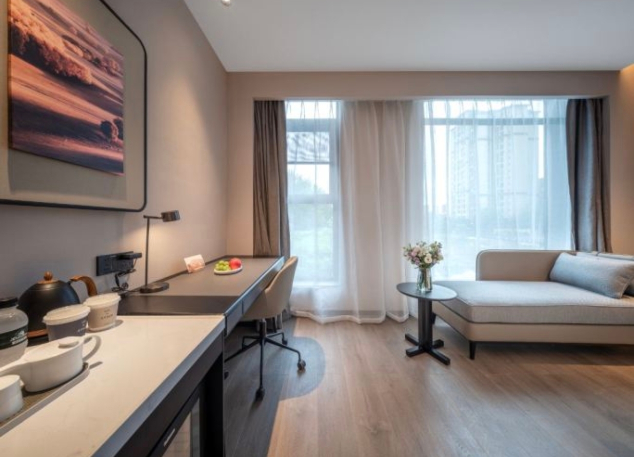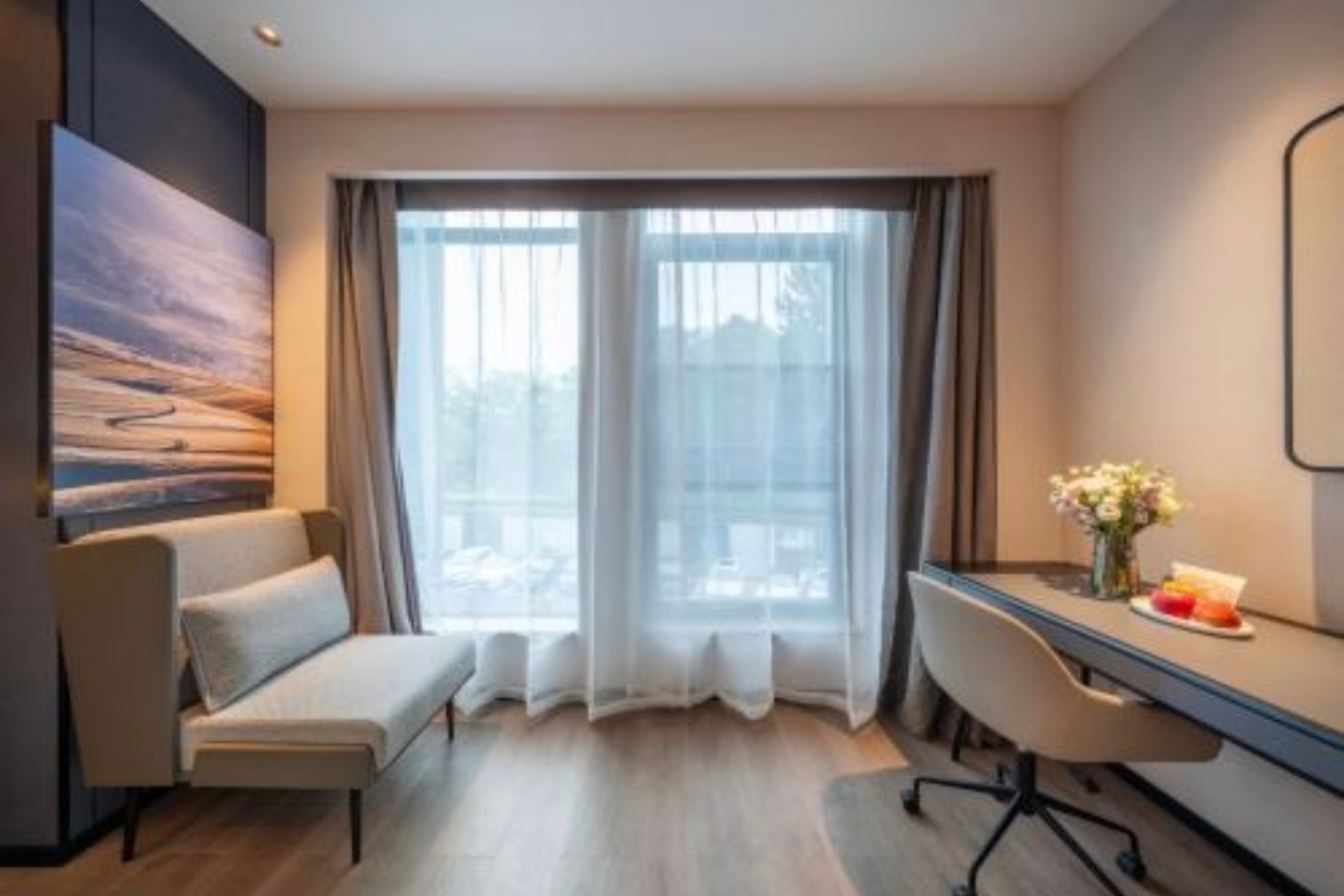 设施服务 :酒店设有免费健身室,配备齐全的健身器材,还有24小时开放的竹居书吧。此外,酒店提供免费停车、免费洗衣服务,洗衣设备专业,洗好后可烘干熨烫并送到房间,还设有送餐机器人。