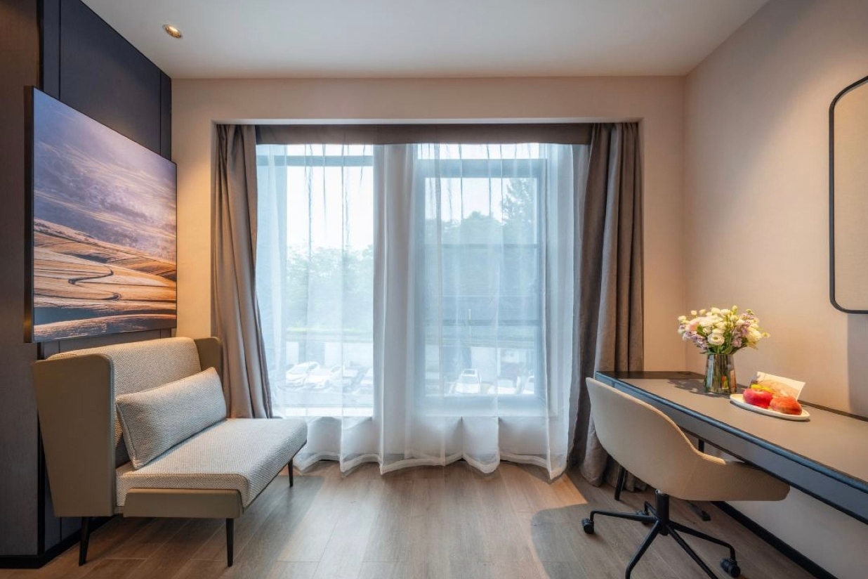 房型介绍 :酒店设有多种房型,包括高级大床房、尊享大床房、几木家庭房、高级双床房、行政双床房等。房间面积从22㎡到39㎡不等,部分房型配备智能客控系统、空气净化器、深睡床垫、深睡PRO枕等设施。