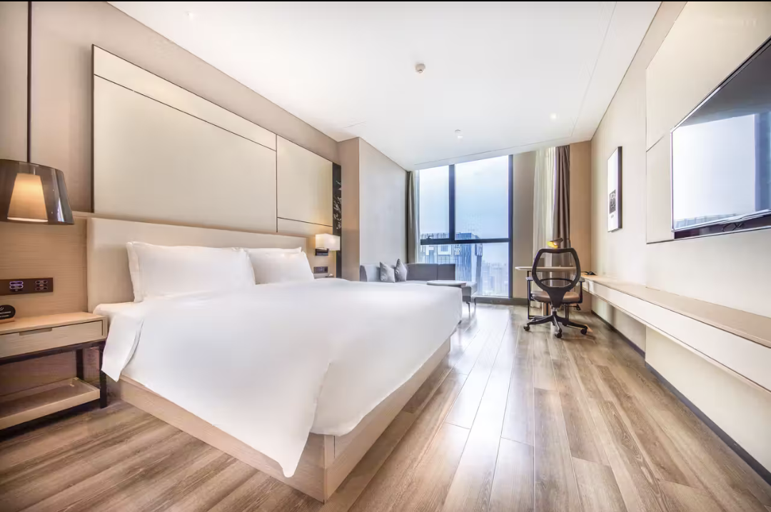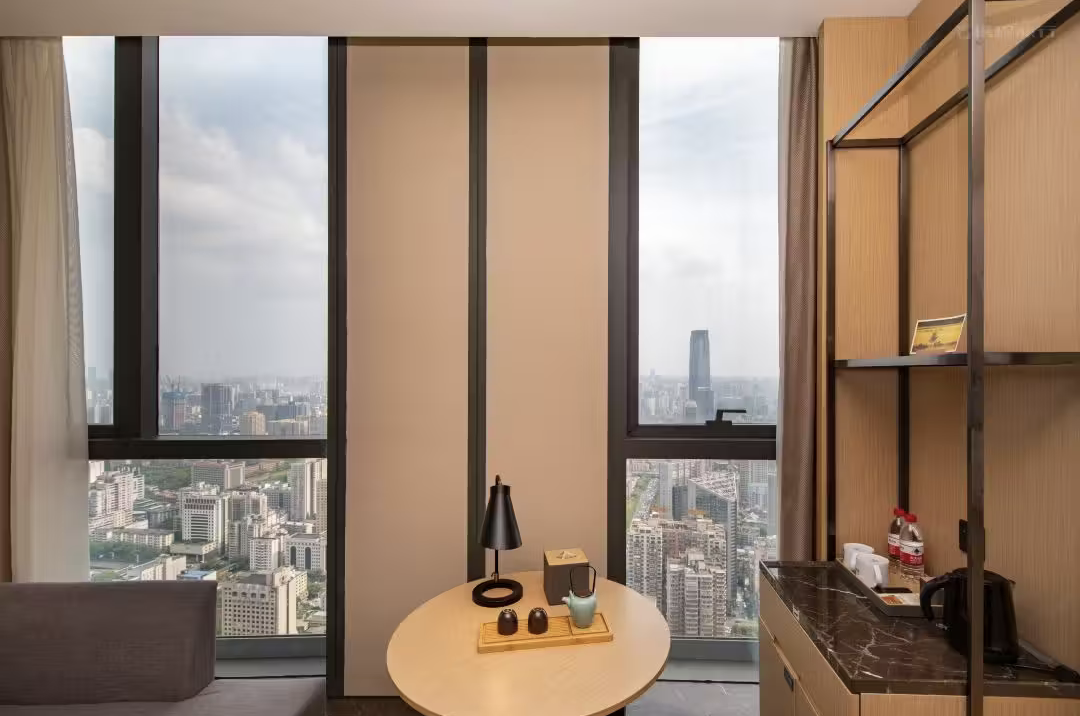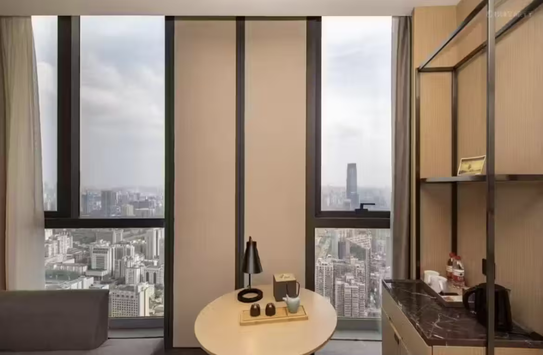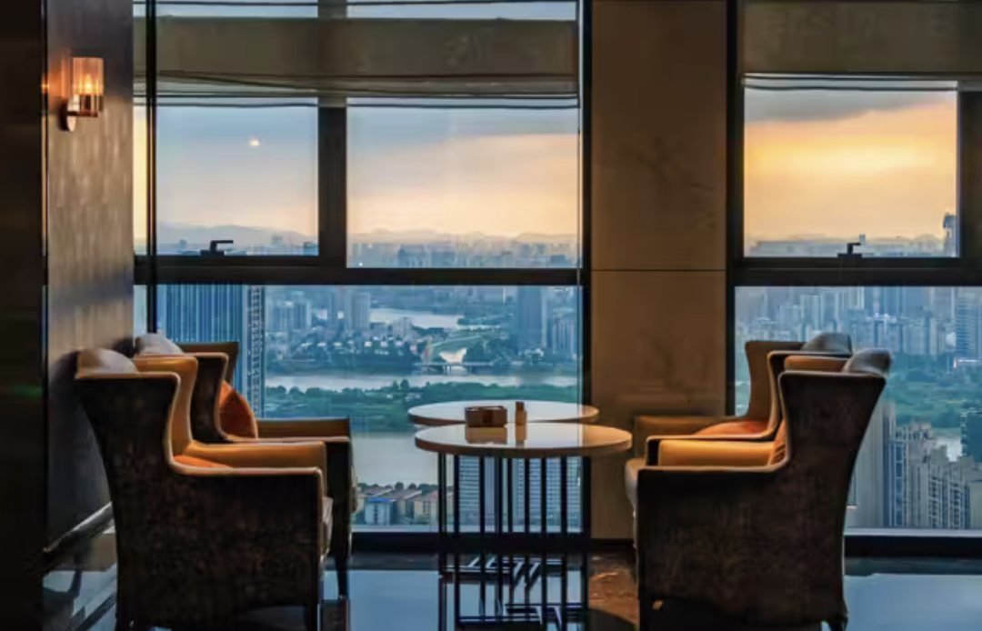 酒店雄踞长沙市中心商务及金融区黄金地段,近开福区芙蓉中路一段的长沙第七高楼新湖南大厦。酒店位于大厦顶层的49到53层。湘江风景,城市景观尽收眼底。高空餐厅,下午茶,尽享美味。酒店毗邻五一广场商圈、省博物馆、橘子洲、岳麓山等著名景点,周边大型商场林立,与湘雅附一医院隔街相望。