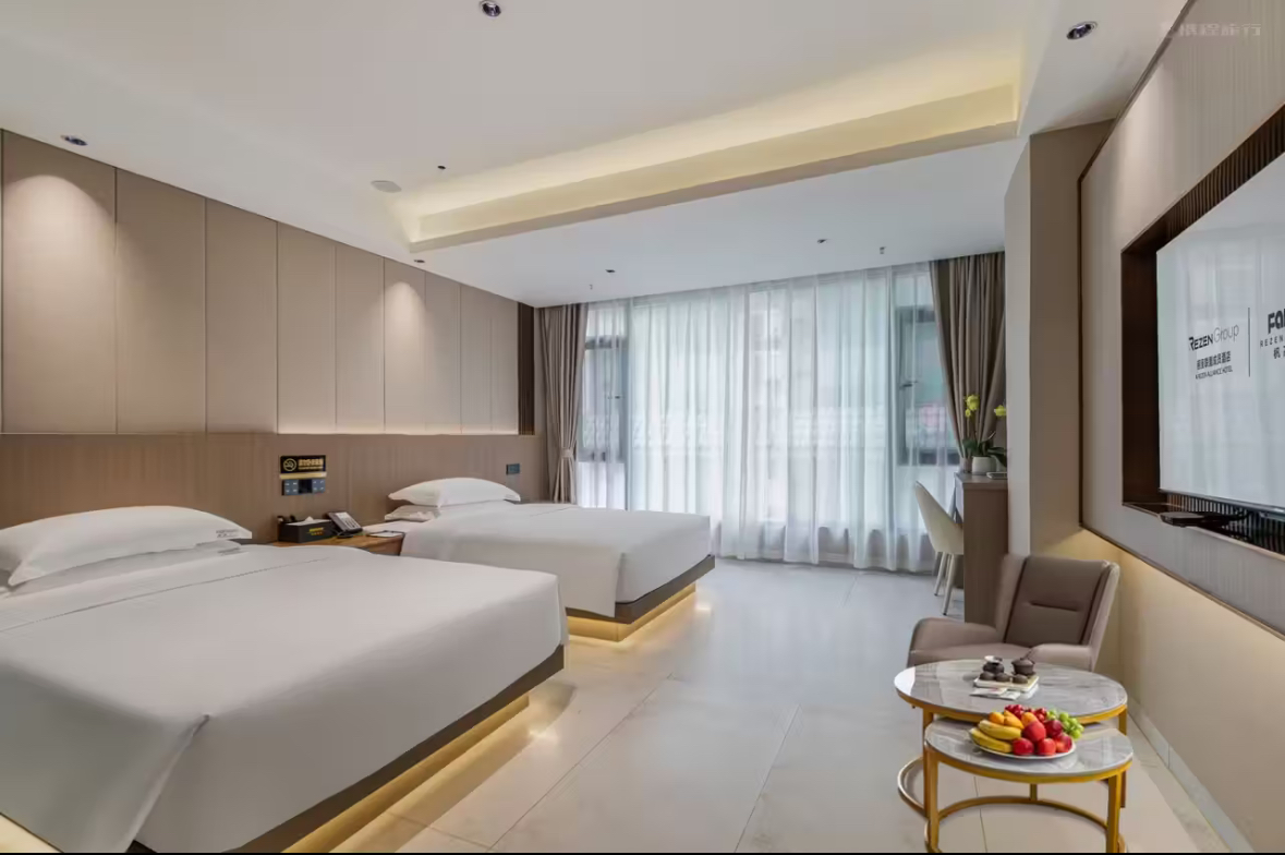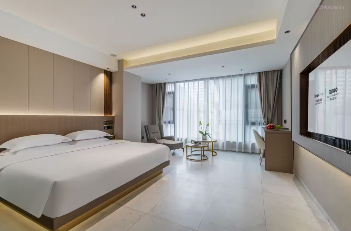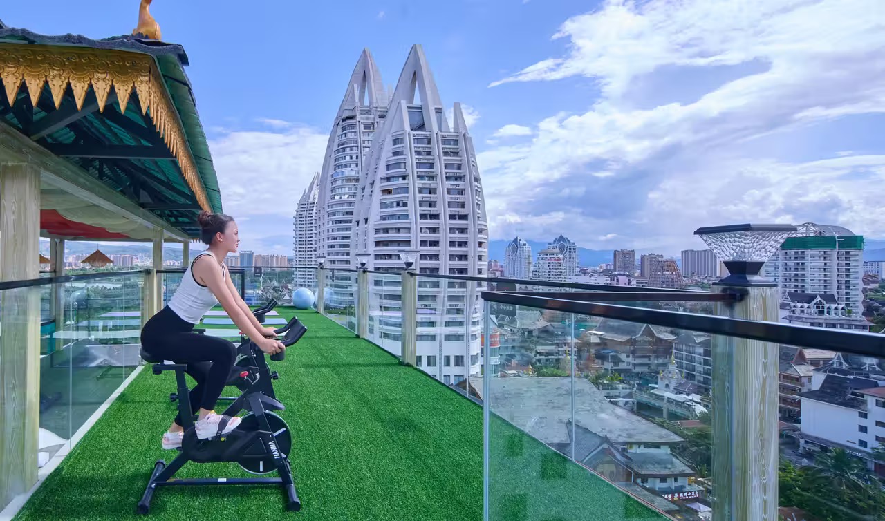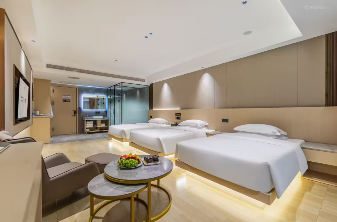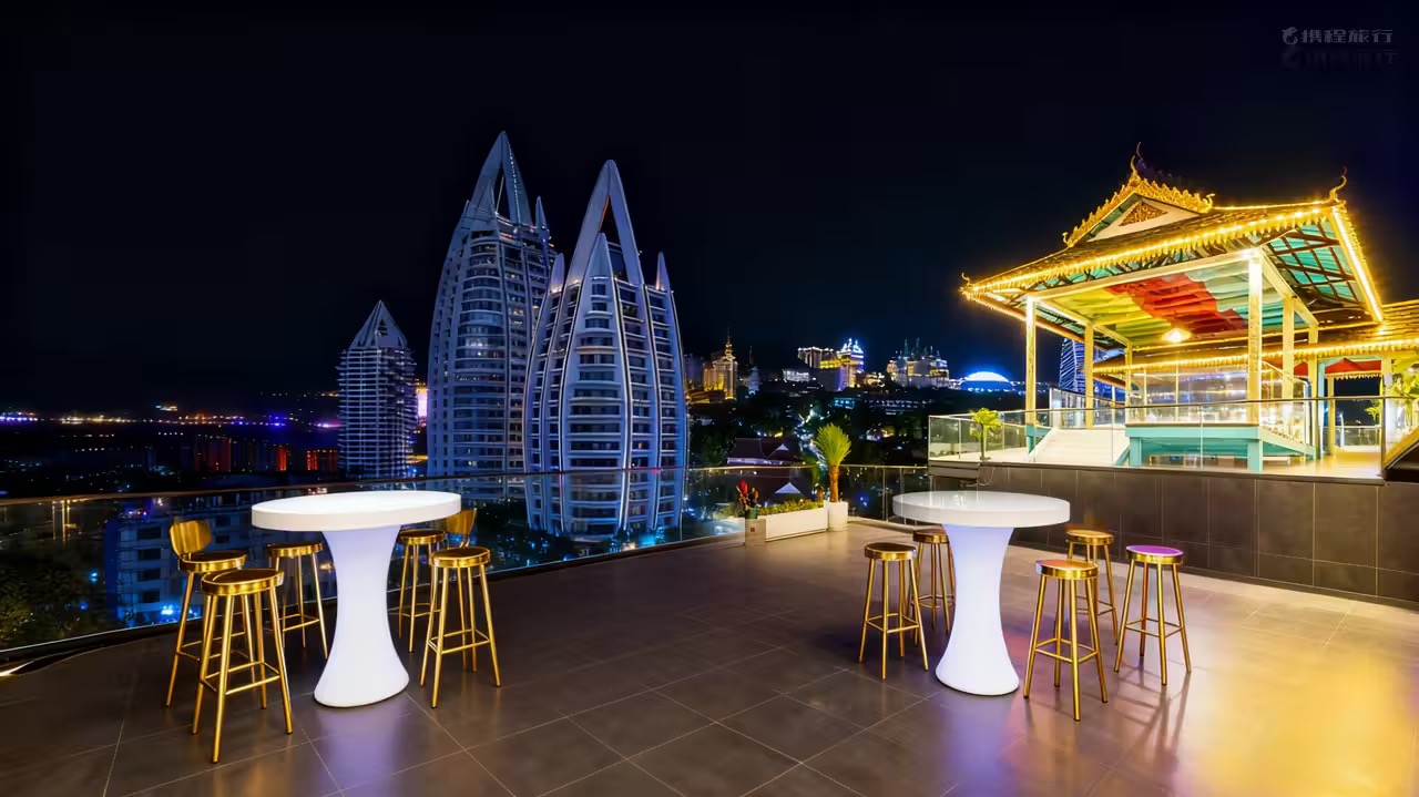 地处告庄西双景核心区,步行可达星光夜市与大金塔,12楼空中泳池能俯瞰夜市与大金塔美景,还配有天空之镜、智能客房,提供免费接送机和避坑指南,早餐供应到11点适配游玩作息,设计上融合潮流元素与热带风情,兼顾便利性与体验感。