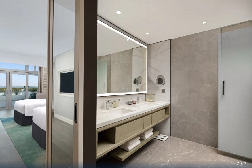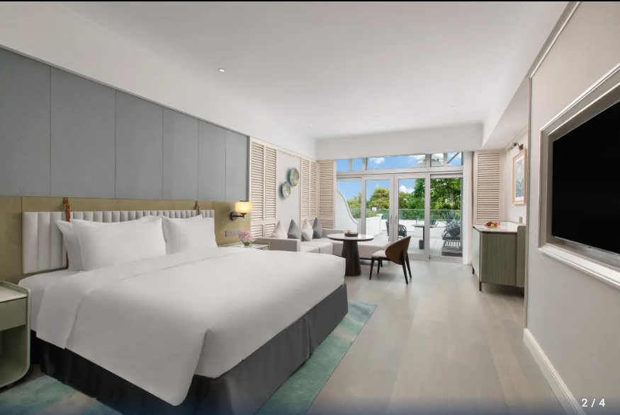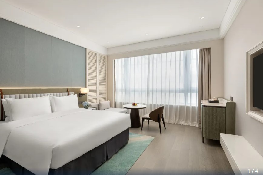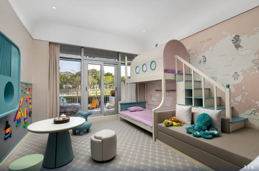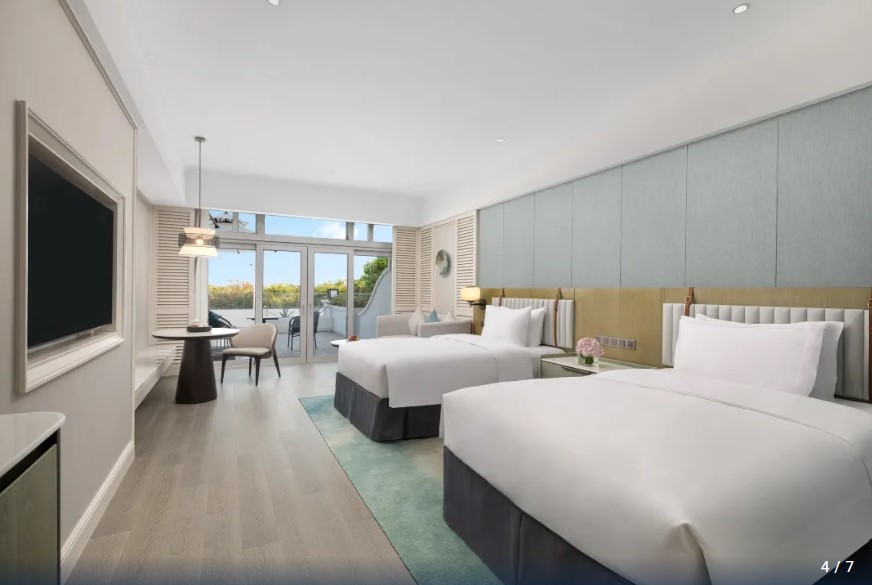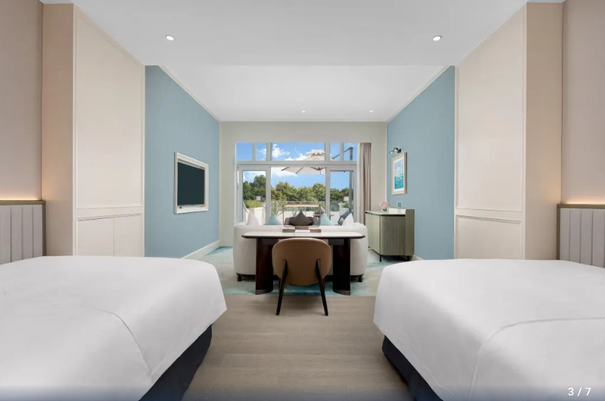 酒店——环岛路海天一色豪华休闲度假酒店,雄踞魅力厦金湾区(厦门金门)风光旖旎的环岛路旁,直面海豚湾沙滩,紧邻厦门国际会展中心。 酒店外型如同一艘航行在21世纪海上丝绸之路的豪华邮轮,优雅迷人,航母级长度达325米,经金砖之光夜景造光者设计,夜间亮灯后一间间美轮美奂的“邮轮窗”一字排开,几层楼犹如一叠叠金砖,而会展中心楼顶又如一个金元宝呈现金色光感的夜景效果。酒店正前方鸟瞰金鸡百花电影节红毯仪式的东广场园林景观,面朝大海,春暖花开。 酒店全新华丽升级,融合了“海”“音乐”“南洋风情”等多元文化设计,成为环岛路海天一色休闲度假之所。酒店客房中有153间面朝大海,近半房间50平方起跳,3-5楼客房可欣赏环岛路近一线豪华海景,拥有超大观海露台,凭栏观海,迎海上浪漫日出之约;酒店还设有非常受多娃家庭欢迎的“1大床+1高低床”的豪华主题亲子房及海马儿童乐园。 酒店地理位置优越,交通非常便捷,周边有厦门高崎国际机场T4、著名景点厦门大学、南普陀寺和沙坡尾、网红打卡新景曾厝垵、中山路步行街、厦门火车站、厦门北站、厦鼓码头鼓浪屿登船点。 热忱欢迎您选择下榻酒店,体验“温馨待客・始终如一”的建发酒店服务。