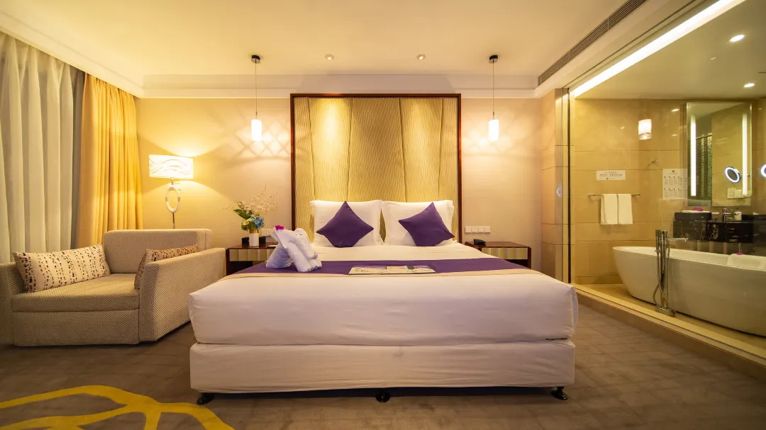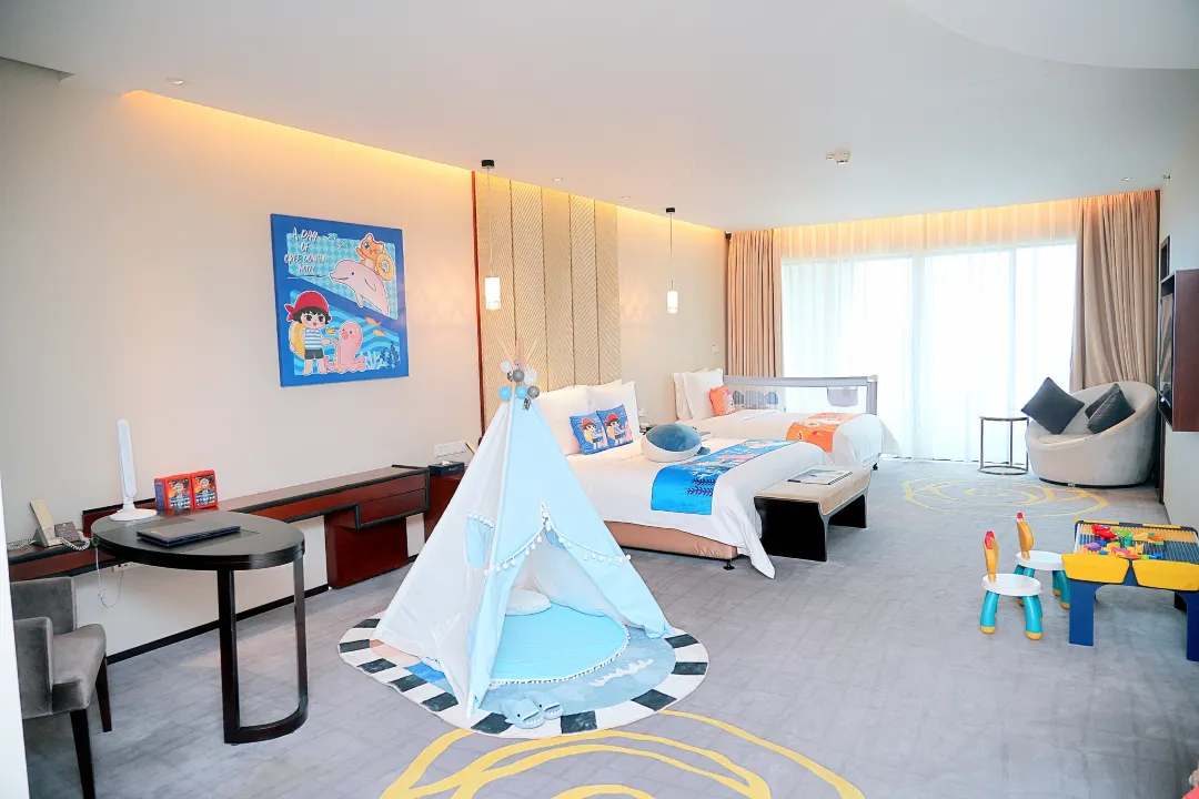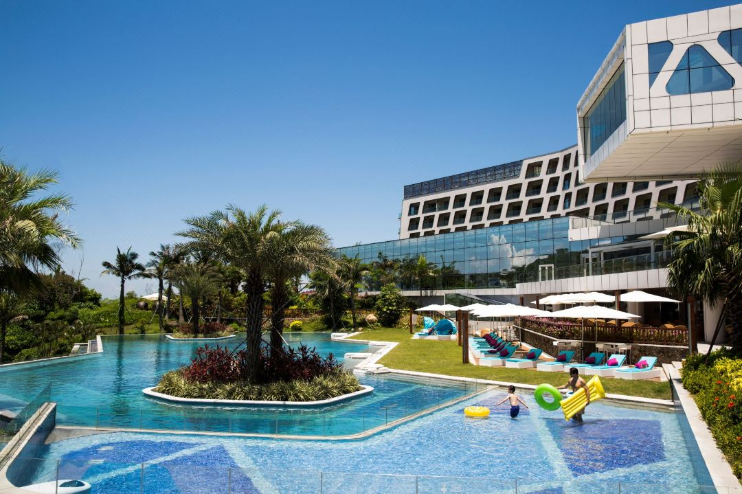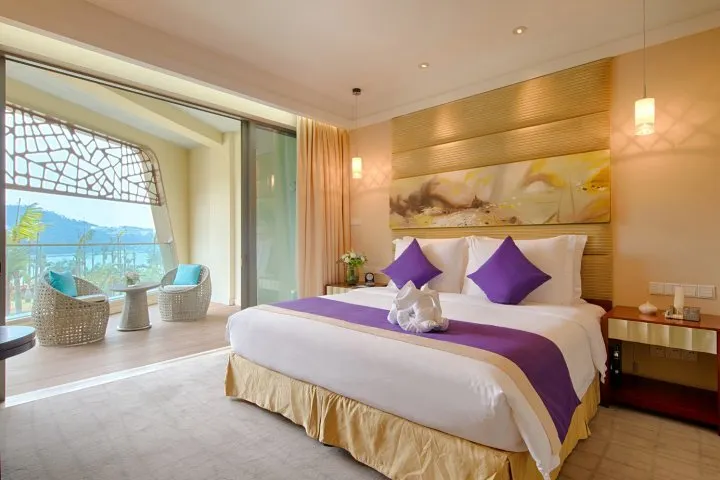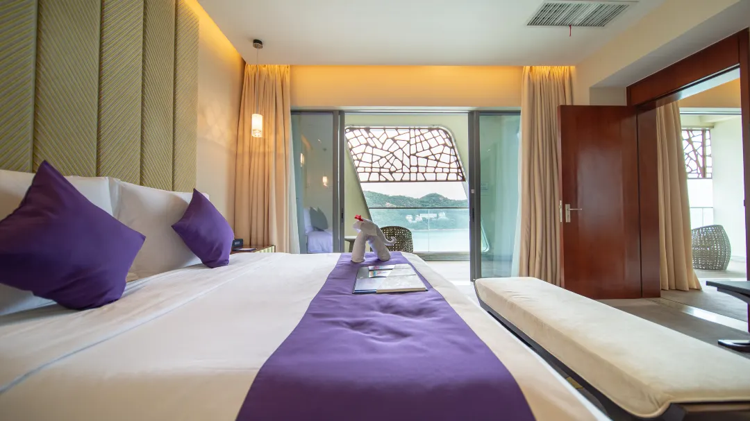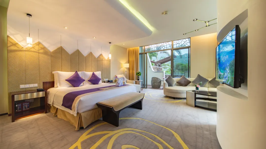 两座主体建筑依山而建,迷人的南沙湾钻石沙滩将其天然相连。酒店拥有山景、海景、亲子等各式客房三百余间,酒店提供多元化餐饮选择,从奢华的国际标准自助餐,到精湛的海鲜中餐厅,再到浪漫的沙滩音乐烧烤派对,更有特色风情酒吧以及一流的会议服务、完善的娱乐休闲设施、多彩的户外娱乐项目和全海景悬崖式海洋热疗。在酒店任何一个地方,都能畅享得天独厚的海岛度假体验。全程微笑的友好服务,无论是全家亲子游、还是夫妻甜蜜游,都能轻松为你搞定。