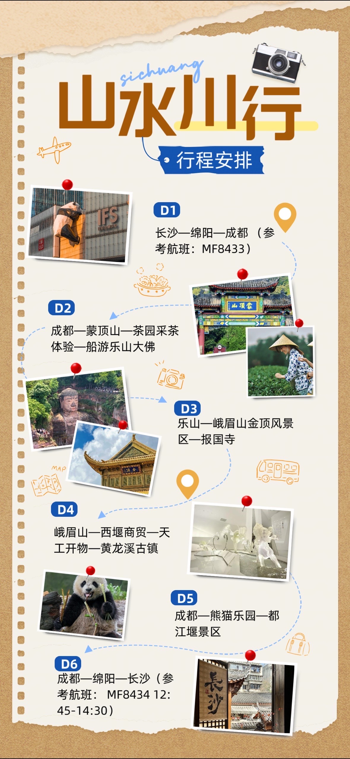 乘车前往绵阳,乘飞机返回长沙,结束难忘的四川之旅。