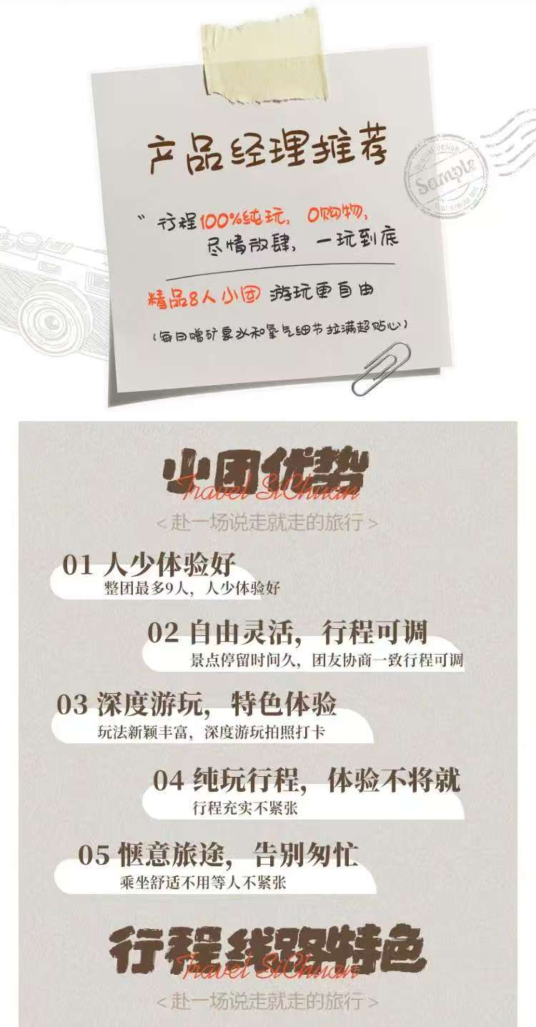 小众体验升级:新增象城禅意小镇游览,感受川西仿古建筑与民俗文化的融合,丰富行程层次。