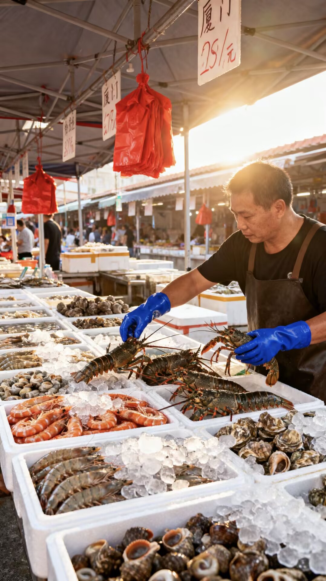 适时集合返回厦门,前往厦门最大的海鲜市场俗称【八市】每人分发30元采购基金,亲自采购晚餐食材,采购海鲜渔货,由餐厅免费加工哦。美美的海鲜大餐,立刻呈现在您的眼前。“八市”从上世纪二三十年代起,这里便是厦门的海鲜集散地。每天吸引大批厦门市民前来购物,外地游客也络绎不绝。八市里,你来我往的叫卖声必能让您充分感受到厦门的烟火气,满足您所有的市井想象。