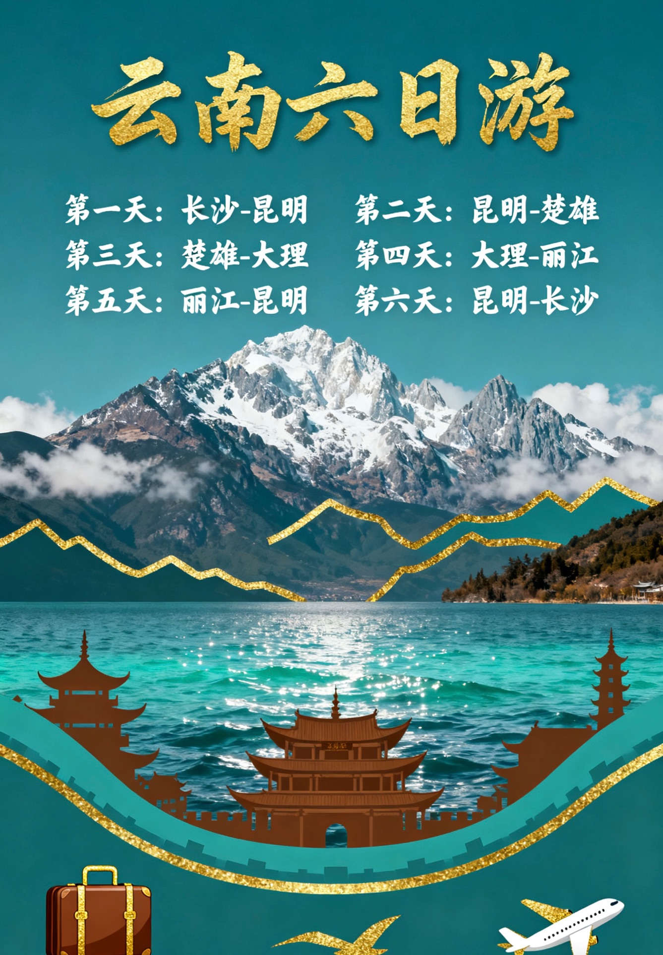 1、交通:长沙—昆明往返经济舱,含机场建设及燃油费;当地空调旅游大巴300元/人