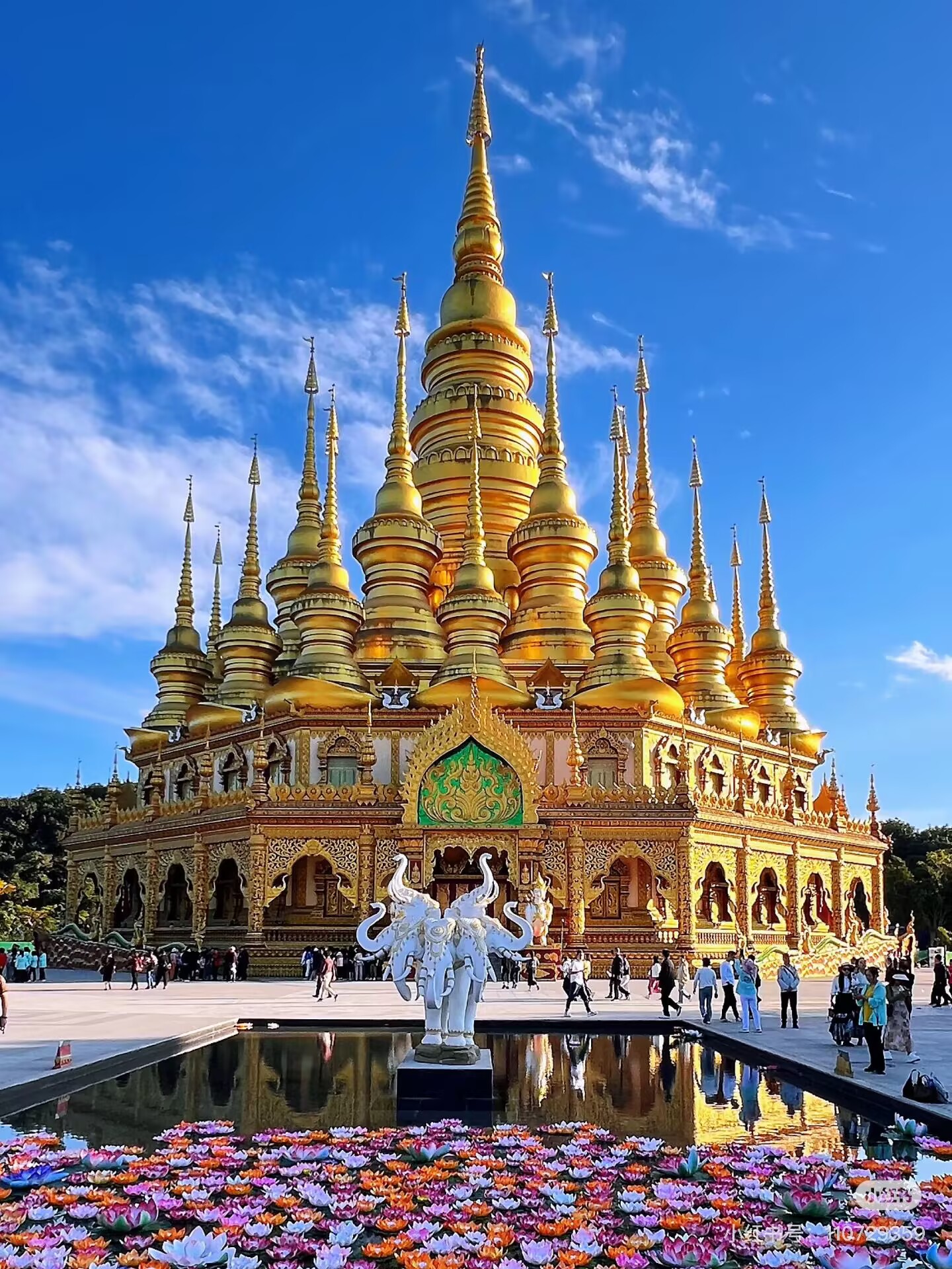 下午乘车前往南传佛教的圣地、世界南传佛教文化中心-【勐泐大佛寺】(游览时间2小时左右,可自愿自费乘坐游览观光车单程40元/人,往返60元/人),佛寺按照国家AAAAA级景区标准打造,是在古代傣王朝的皇家寺院“景飘佛寺”的原址上恢复重建的;景区以佛祖释迦牟尼的生平及佛寺活动为主线,九龙浴佛、景飘大殿、神石、国殿、吉祥大佛等,充分展示南传佛教的历史与传统文化色彩。从万佛塔前广场俯视景洪市区,旖旎的热带风光尽收眼底,可体验最具傣族传统特色的泼水体验活动,不在泼水节,一样湿身狂欢,尽情释放,佛光普照之下,为您带来更多的祝福。