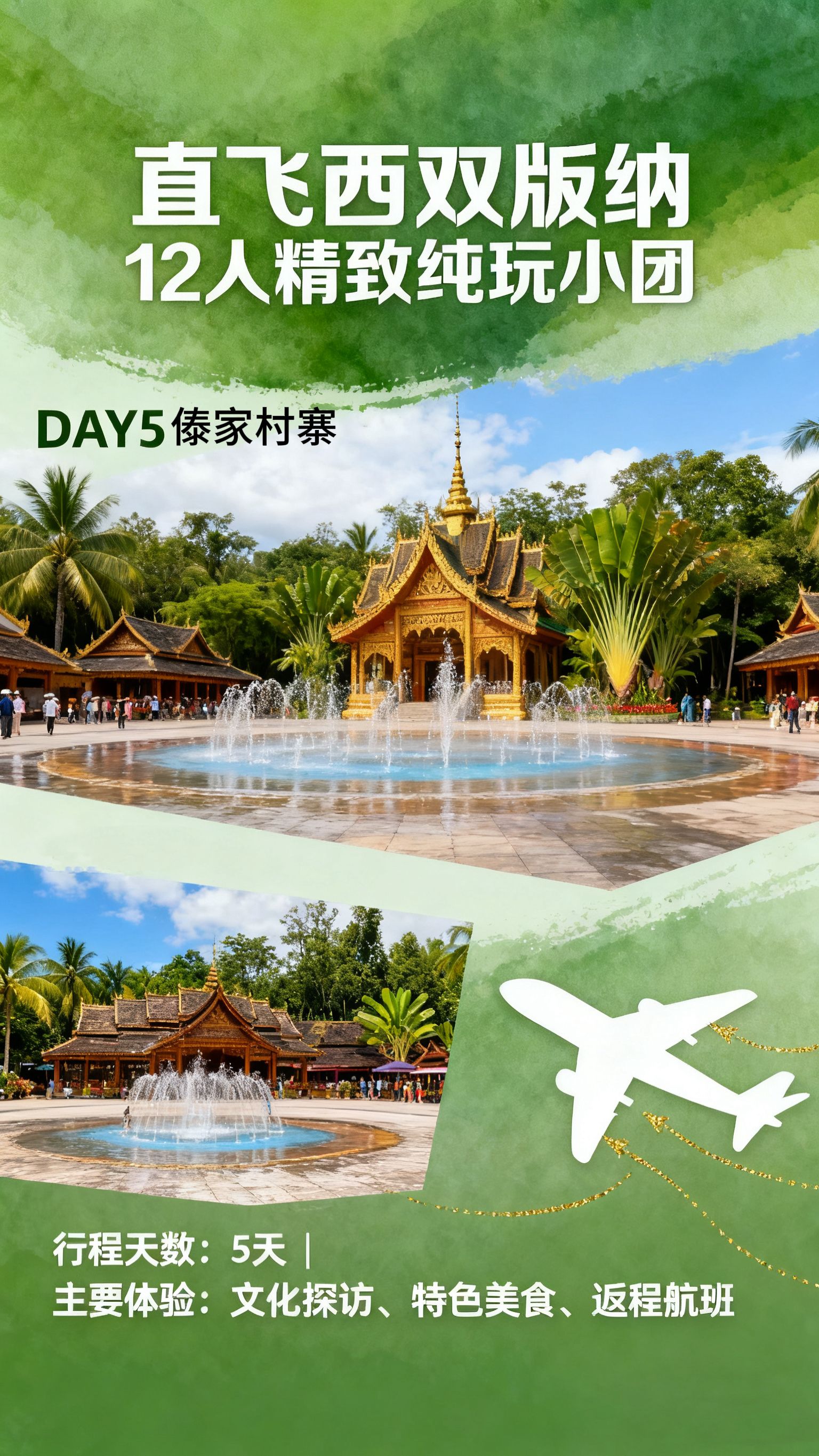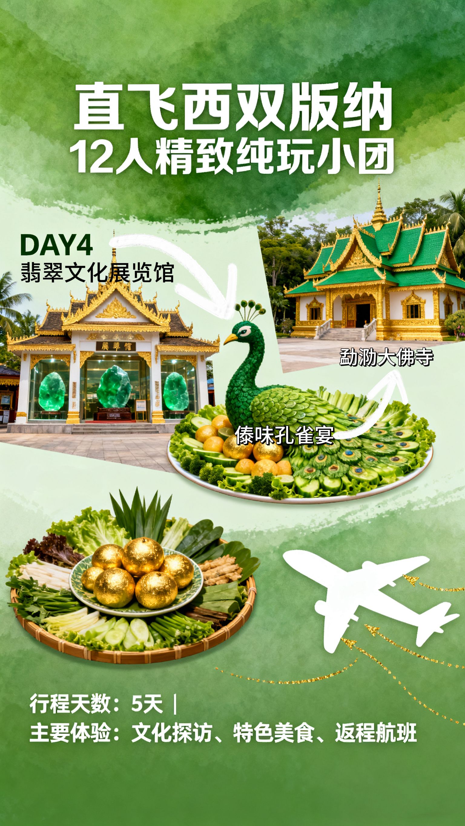 行程内指定餐食:含DAY2至DAY5的每日早餐,DAY2午餐(象餐)、晚餐(竹筒宴),DAY3晚餐(大益庄园茶宴),DAY4午餐(傣味孔雀宴),DAY5午餐(傣家村寨家宴)。