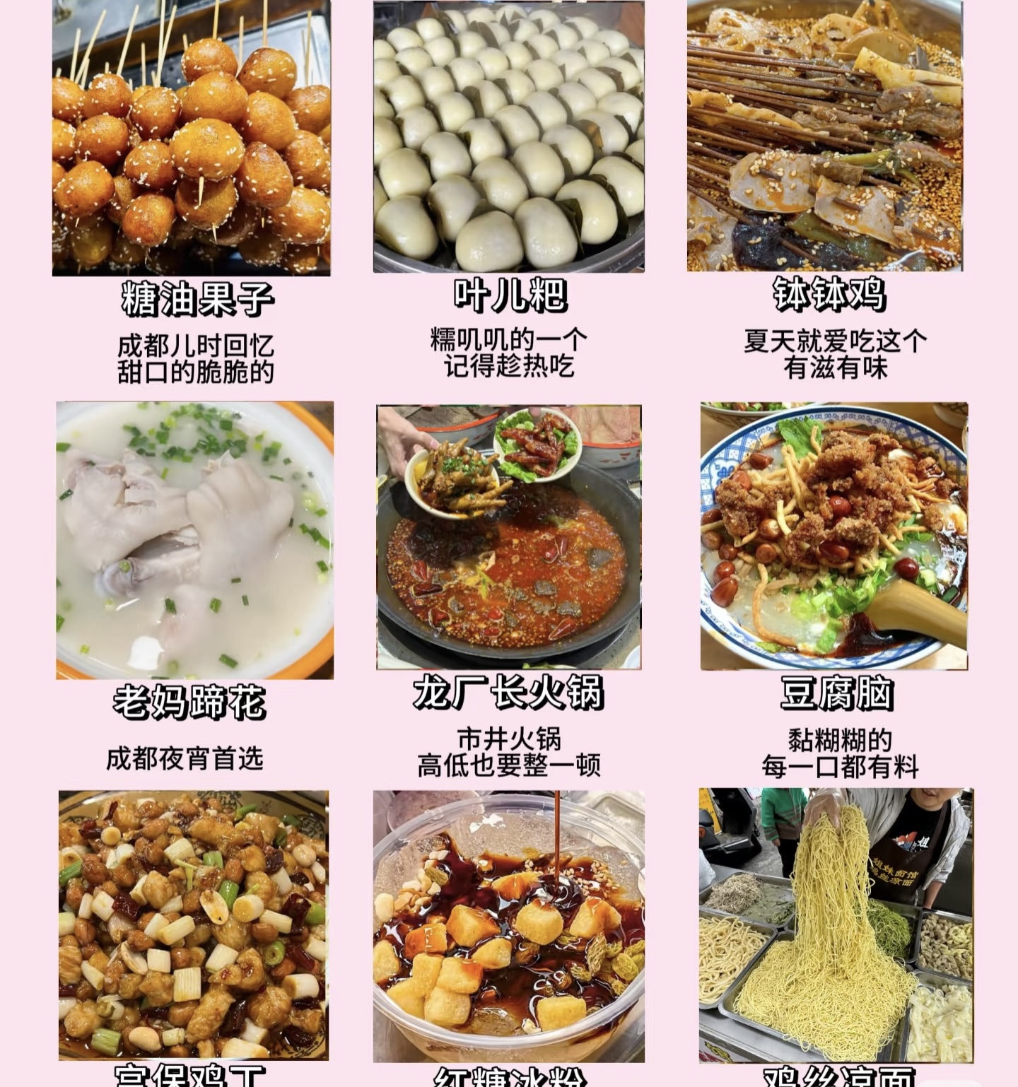 鹤鸣茶社—熊猫邮局—宽窄巷子—玉林路—空港花田—黄龙溪—夜游锦里