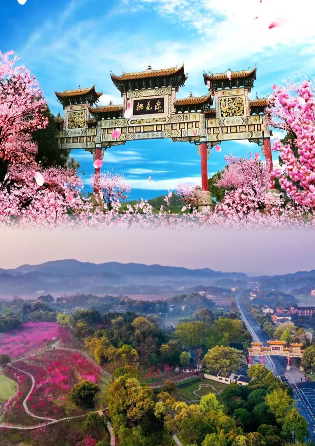 早上在成都双流机场统一集合,乘坐飞机从成都前往常德(参考航班:MU9885 09:55 - 11:30 ),随后乘车前往桃花源古镇游览(车程及游览时间以实际为准)。桃花源古镇主体景区包括桃花山、桃源山、秦人村、桃仙岭和灵境湖五个景区,这里风景秀丽,充满着古朴的韵味与神秘的田园气息。